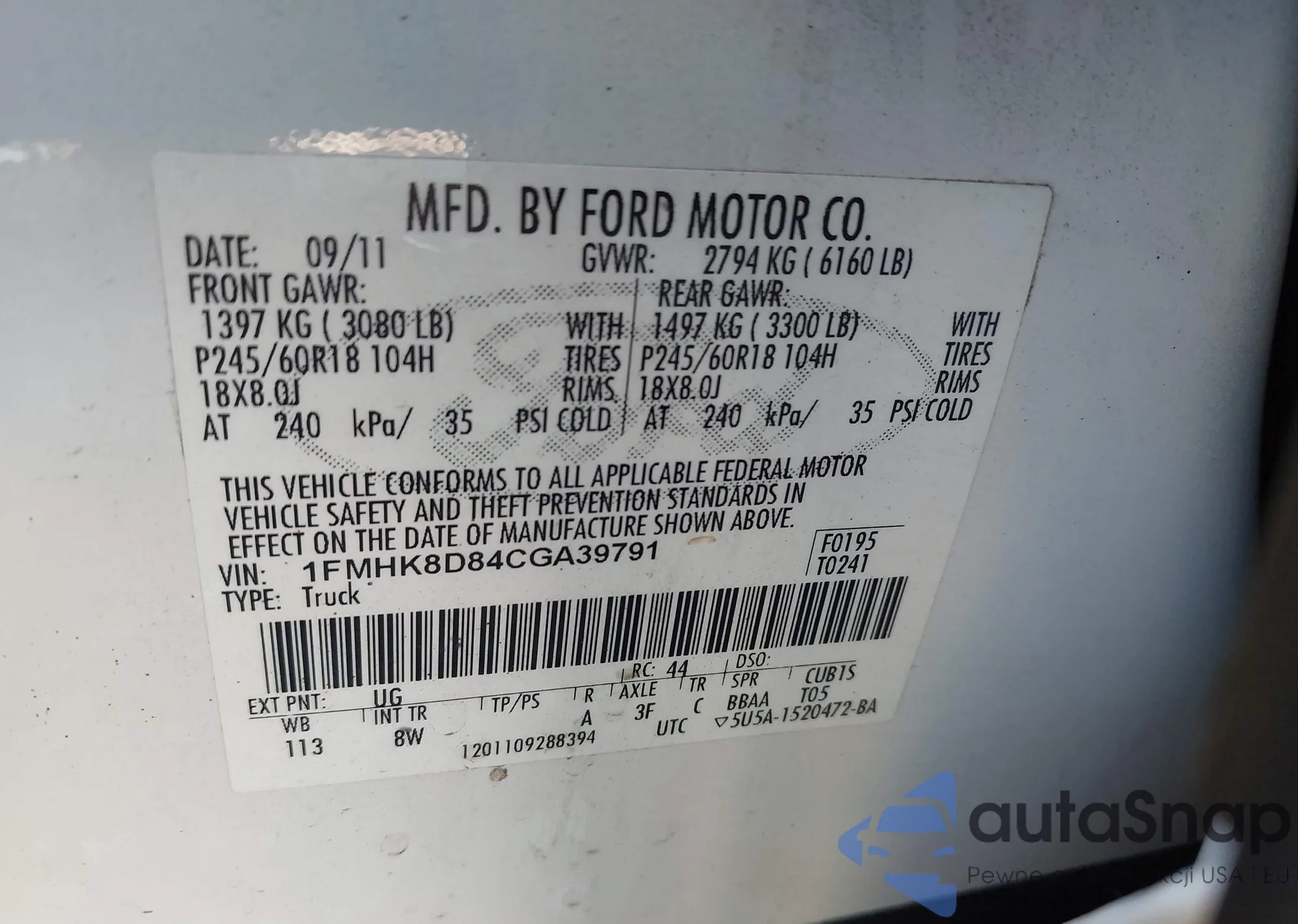 • VIN 1FMHK8D84CGA39791