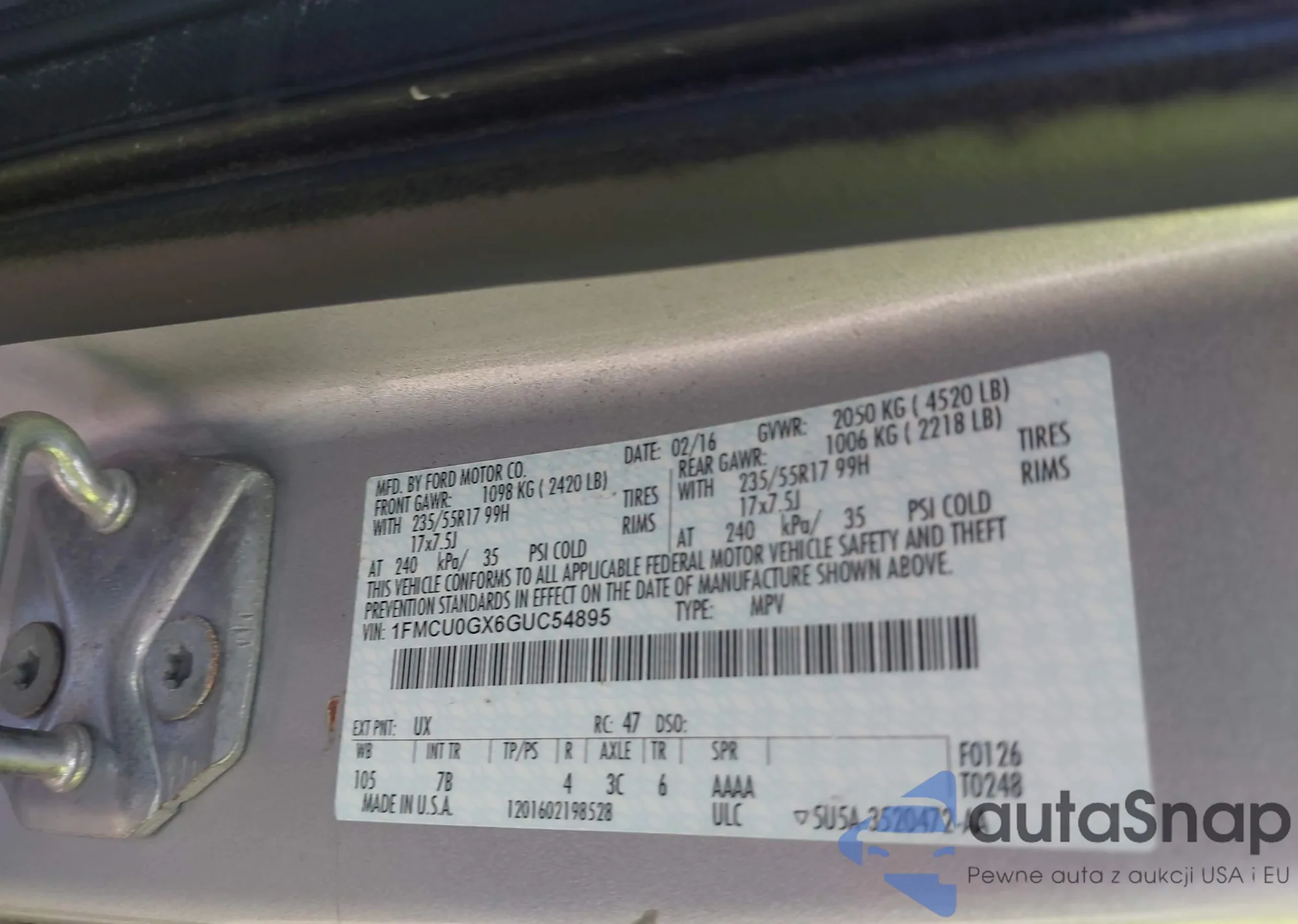 LOT: 43350171 VIN: 1FMCU9GX0FUB70641