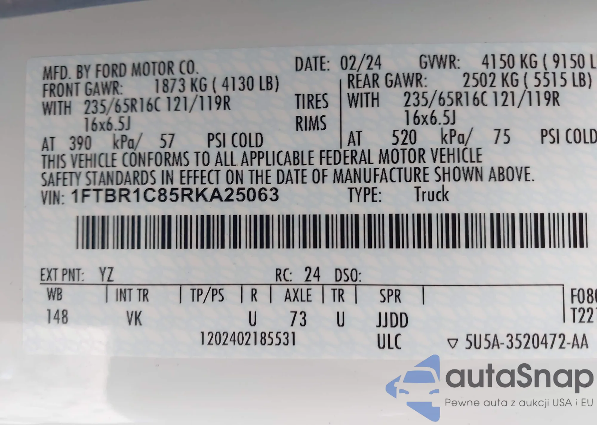 • VIN 1FTNE2EL8BDA18540