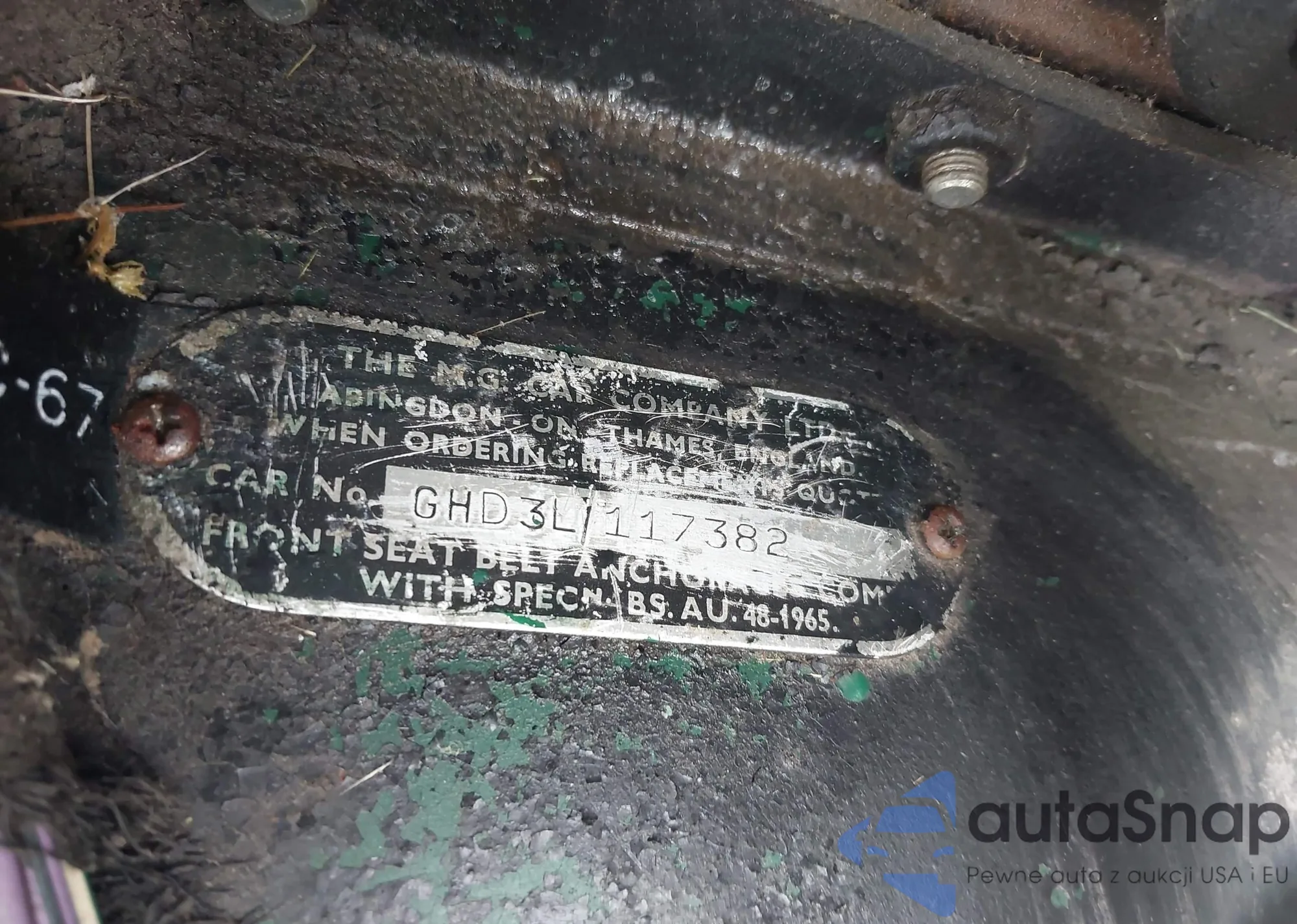 1967 Mg Mgb из США, поврежденный, VIN GHD3L117382