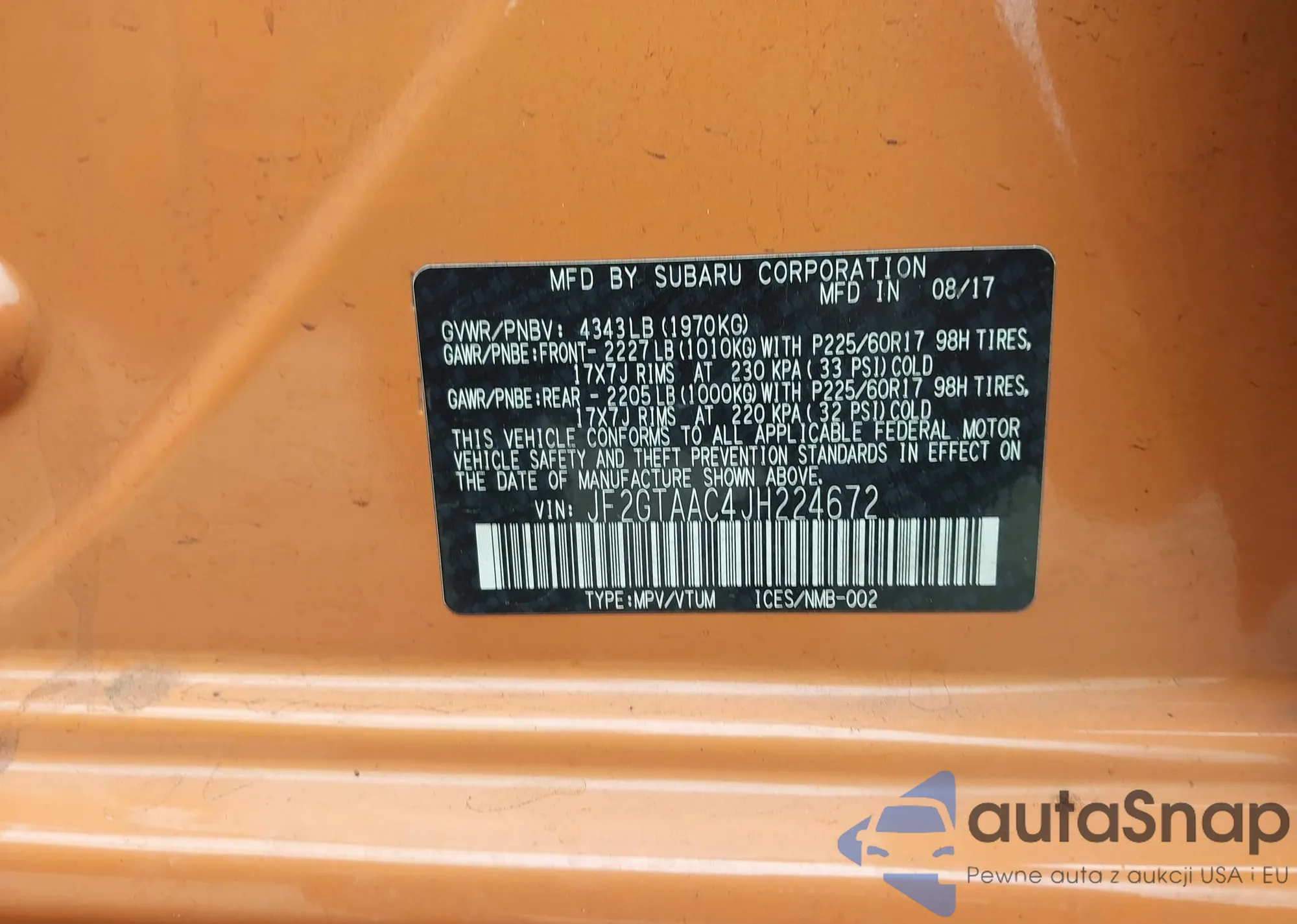 LOT: 43144515 VIN: 5FPYK3F52SB041002