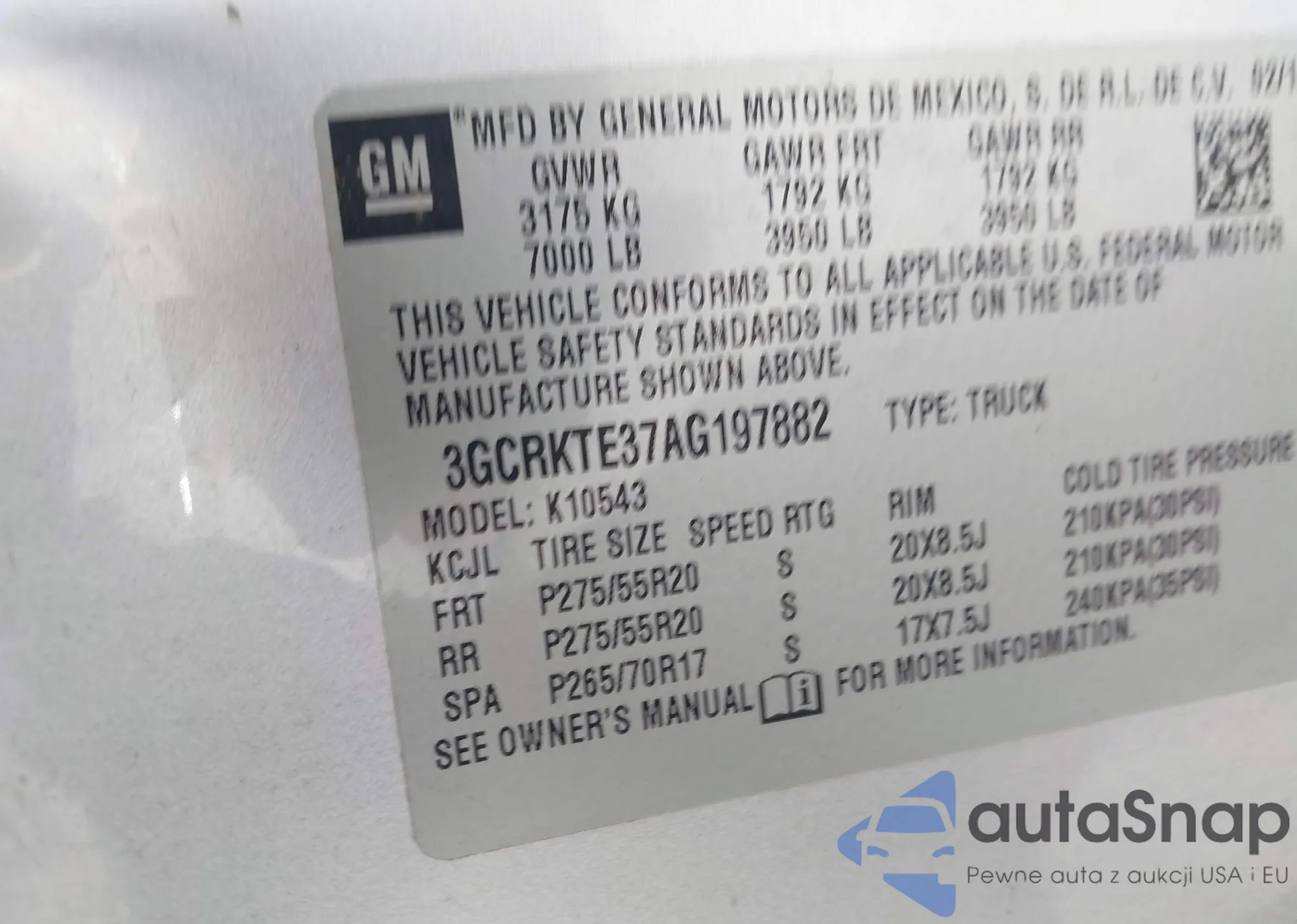 • VIN 3GCRKTE37AG197882