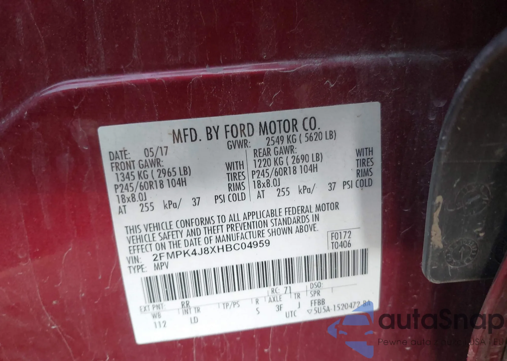 • VIN 2FMPK3J98LBA03816