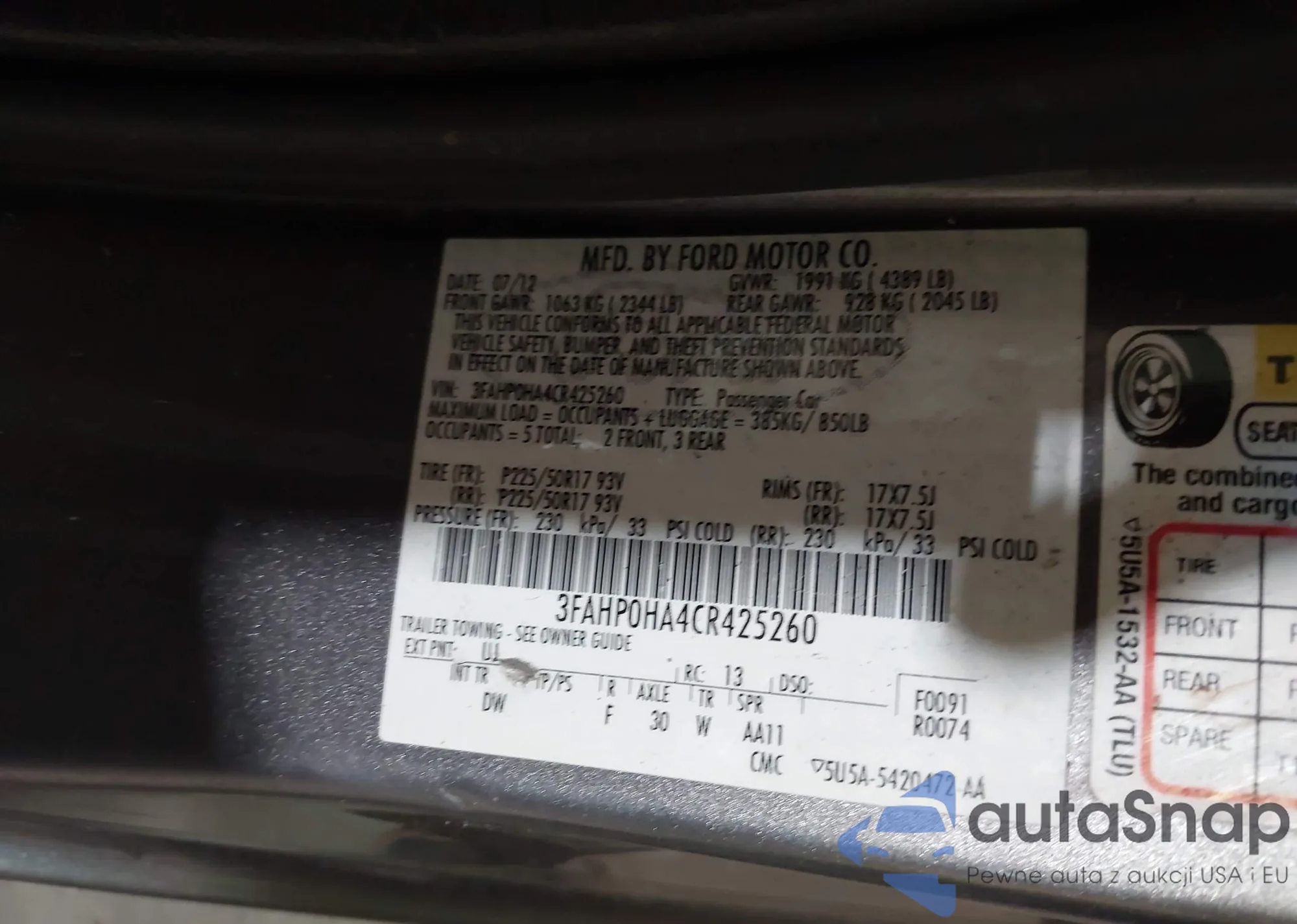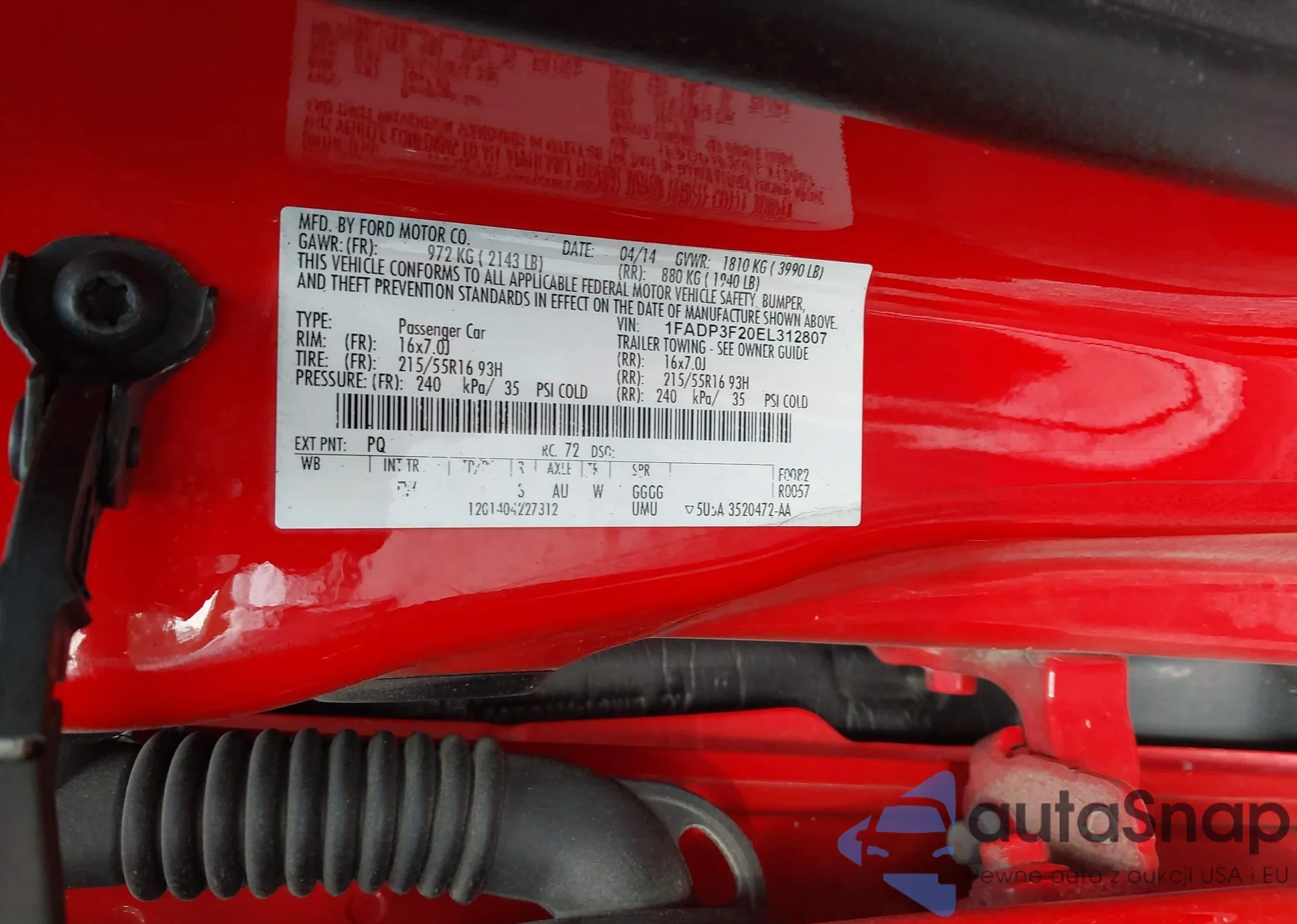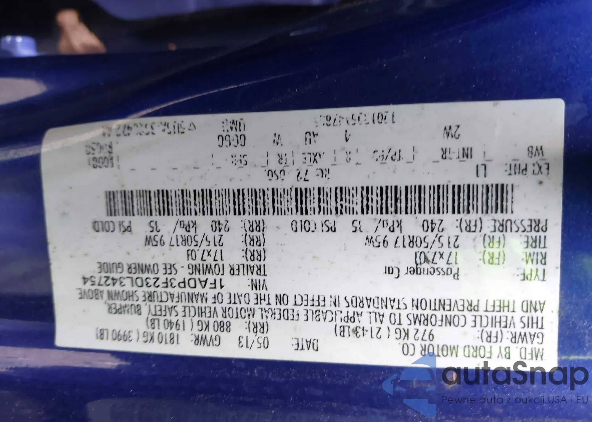 LOT: 42872787 VIN: 1FADP3F23DL342754