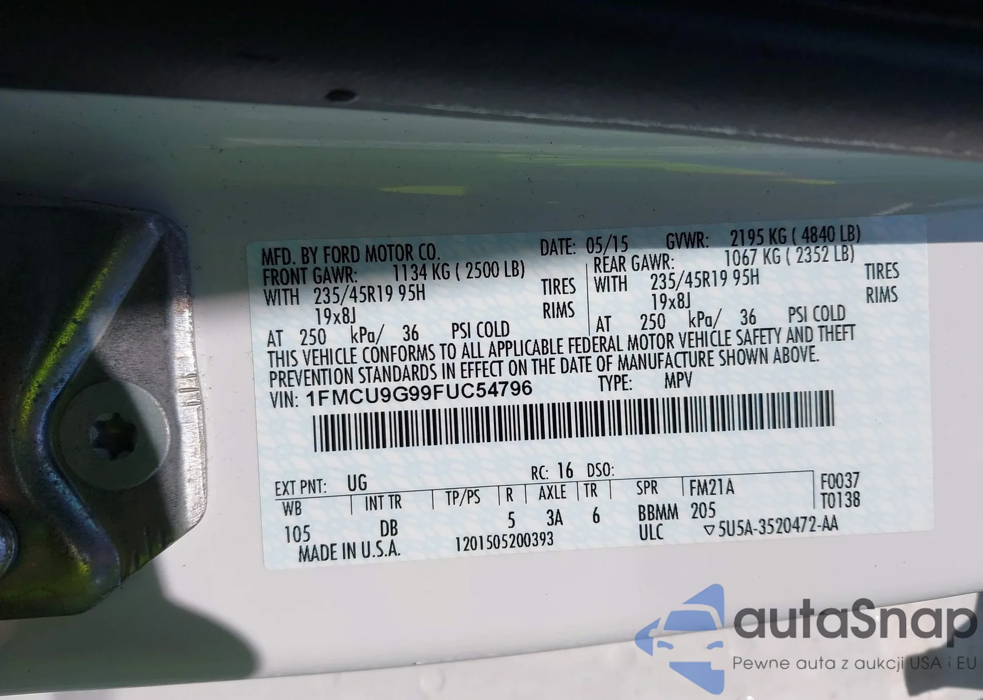 LOT: 43073341 VIN: 1FMCU9G99FUC54796