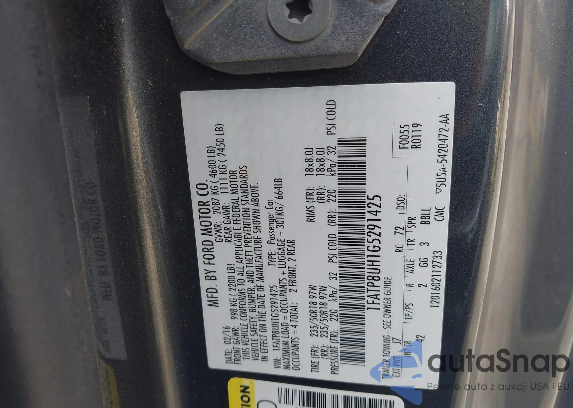 LOT: 43132600 VIN: 1FATP8UH1G5291425