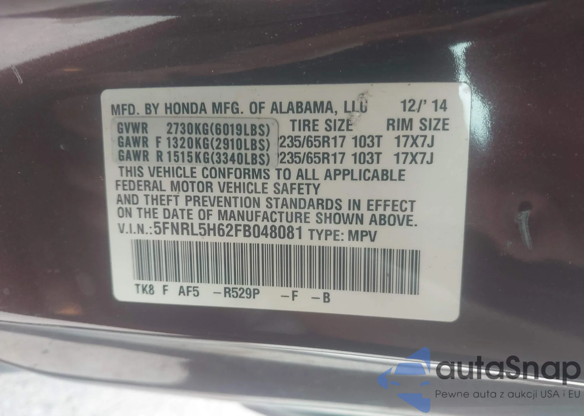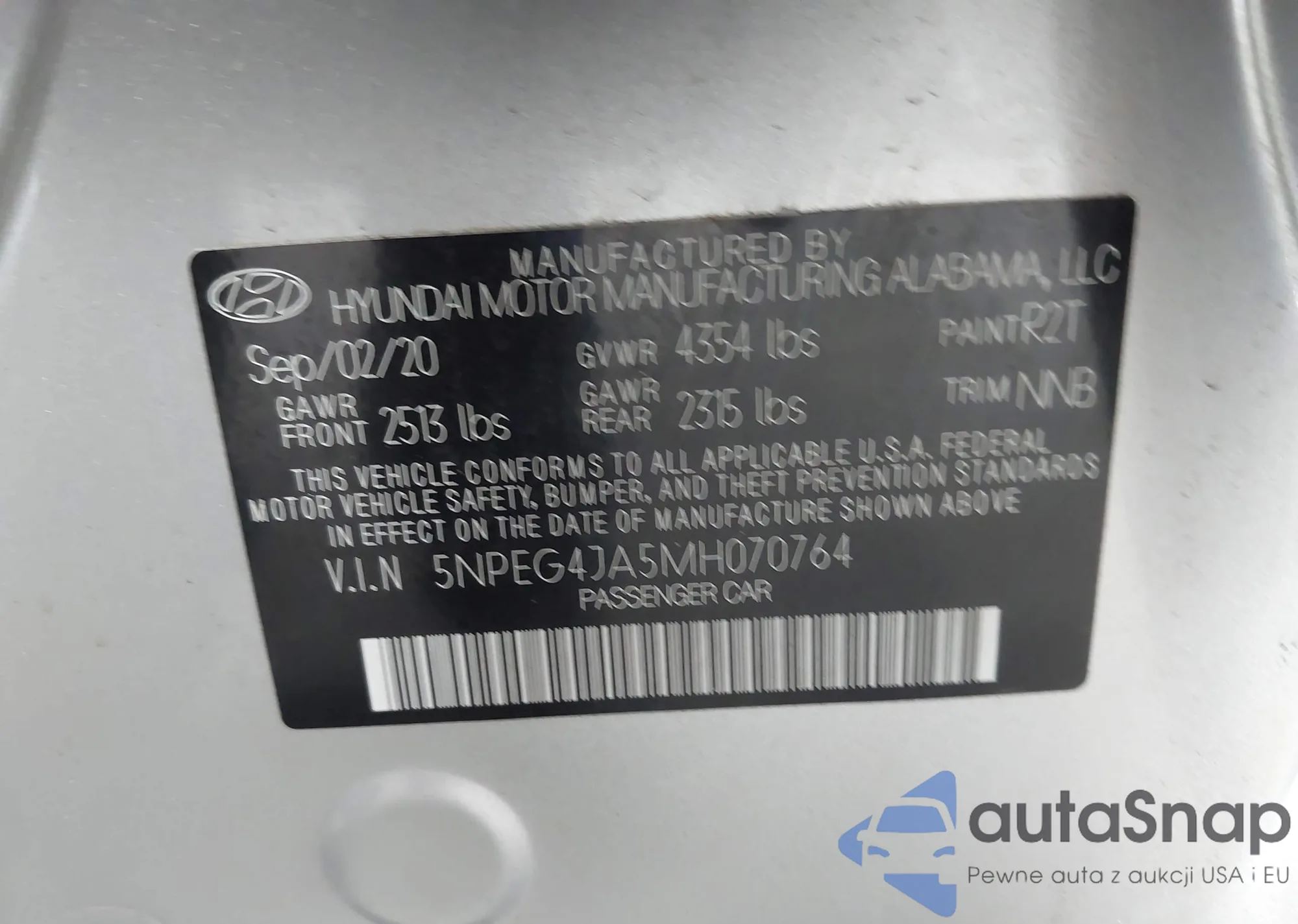 • VIN 5NMJF3AE9PH206927