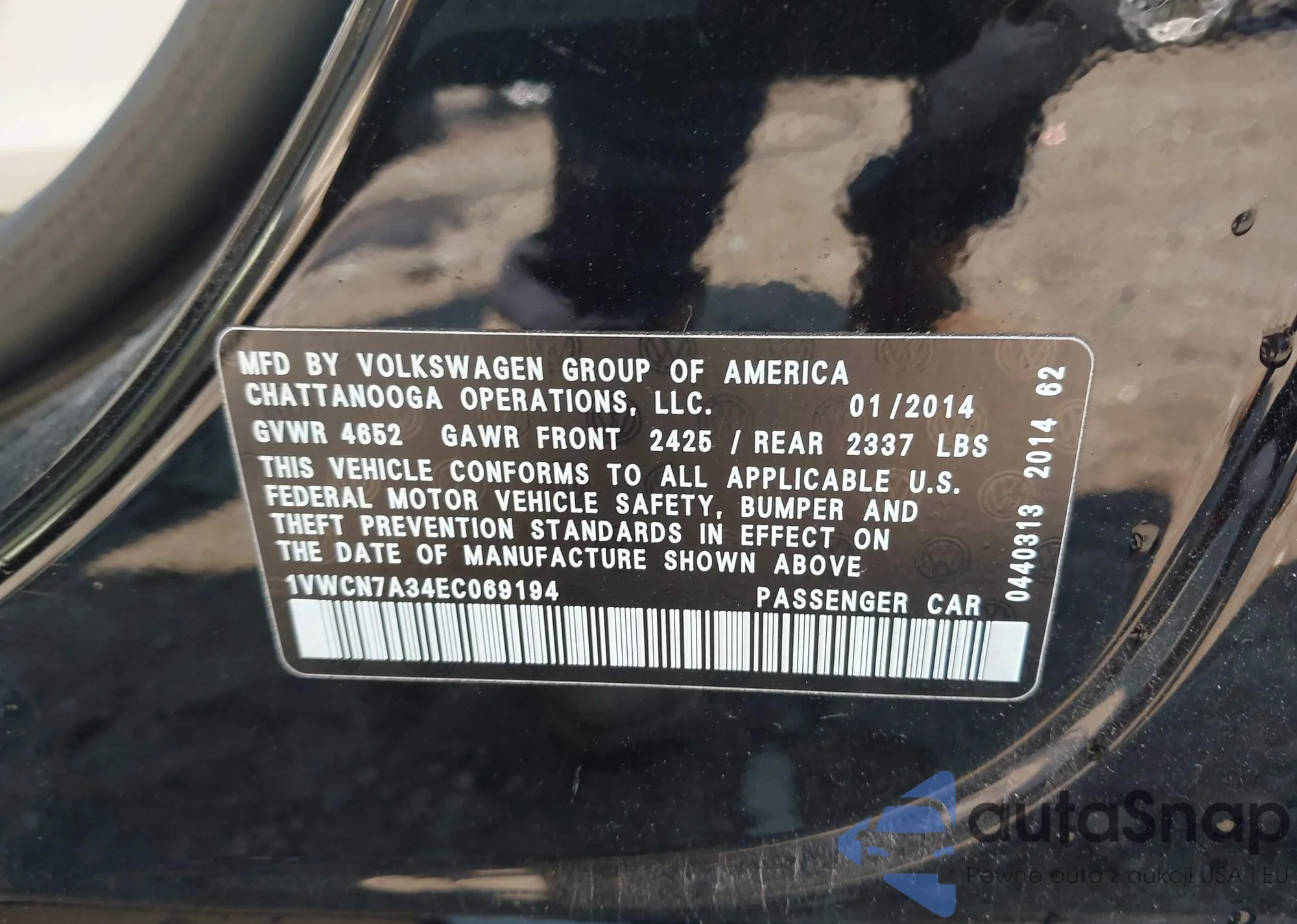 LOT: 43229359 VIN: 1VWCN7A34EC069194
