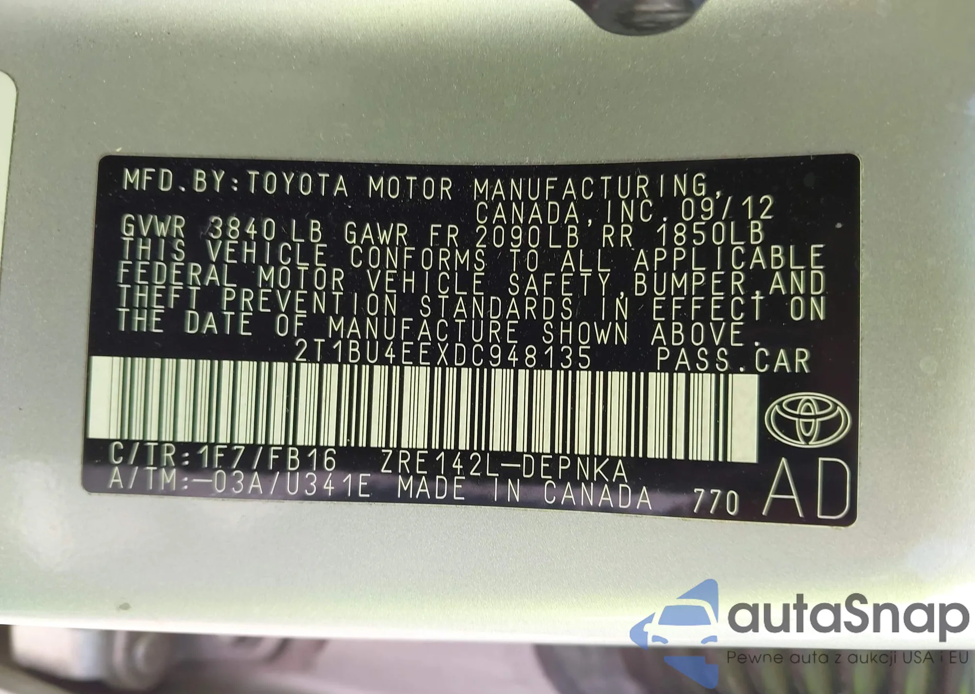 • VIN 2T1BU4EEXDC948135