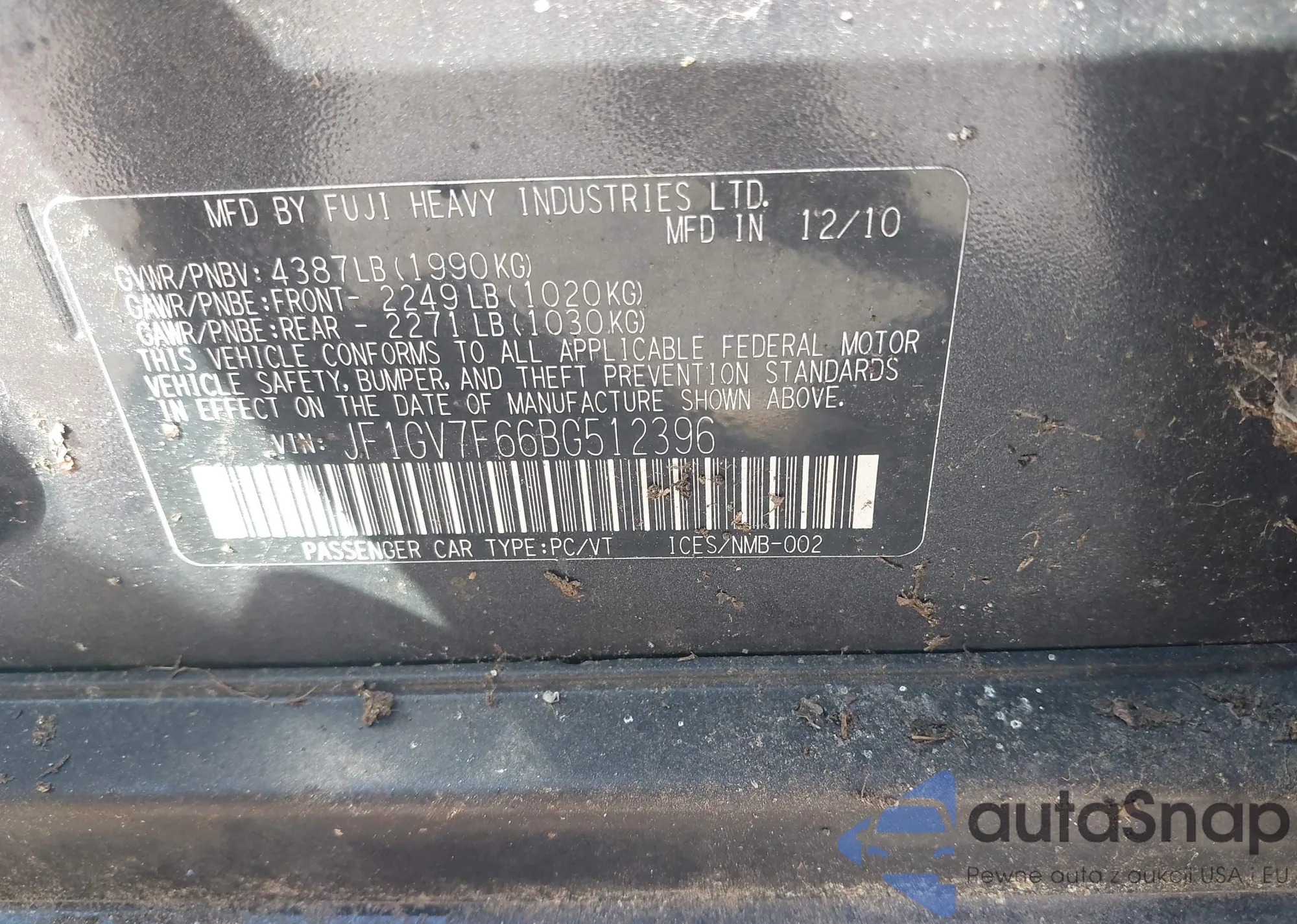 LOT: 43250106 VIN: JF1GV7F66BG512396