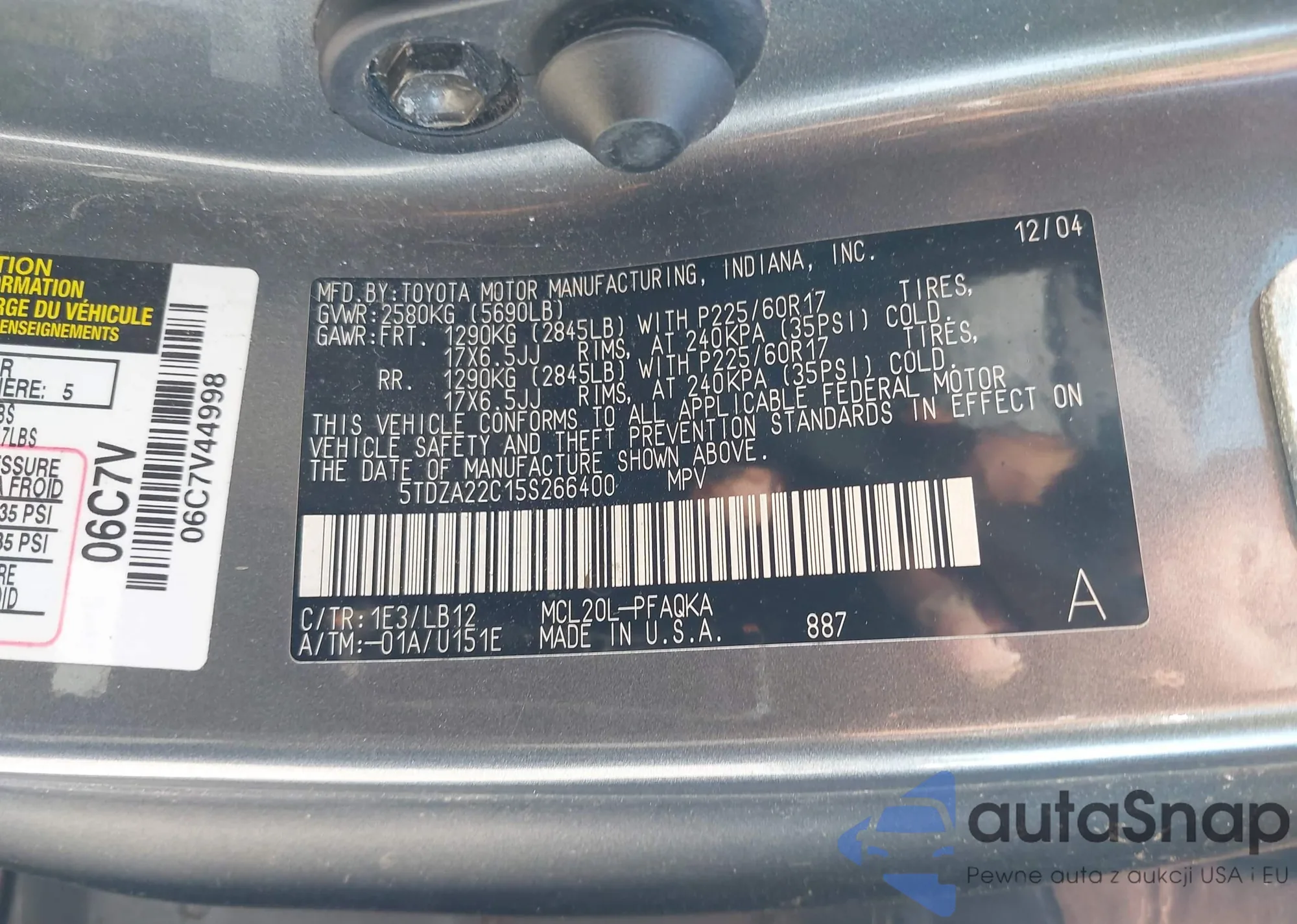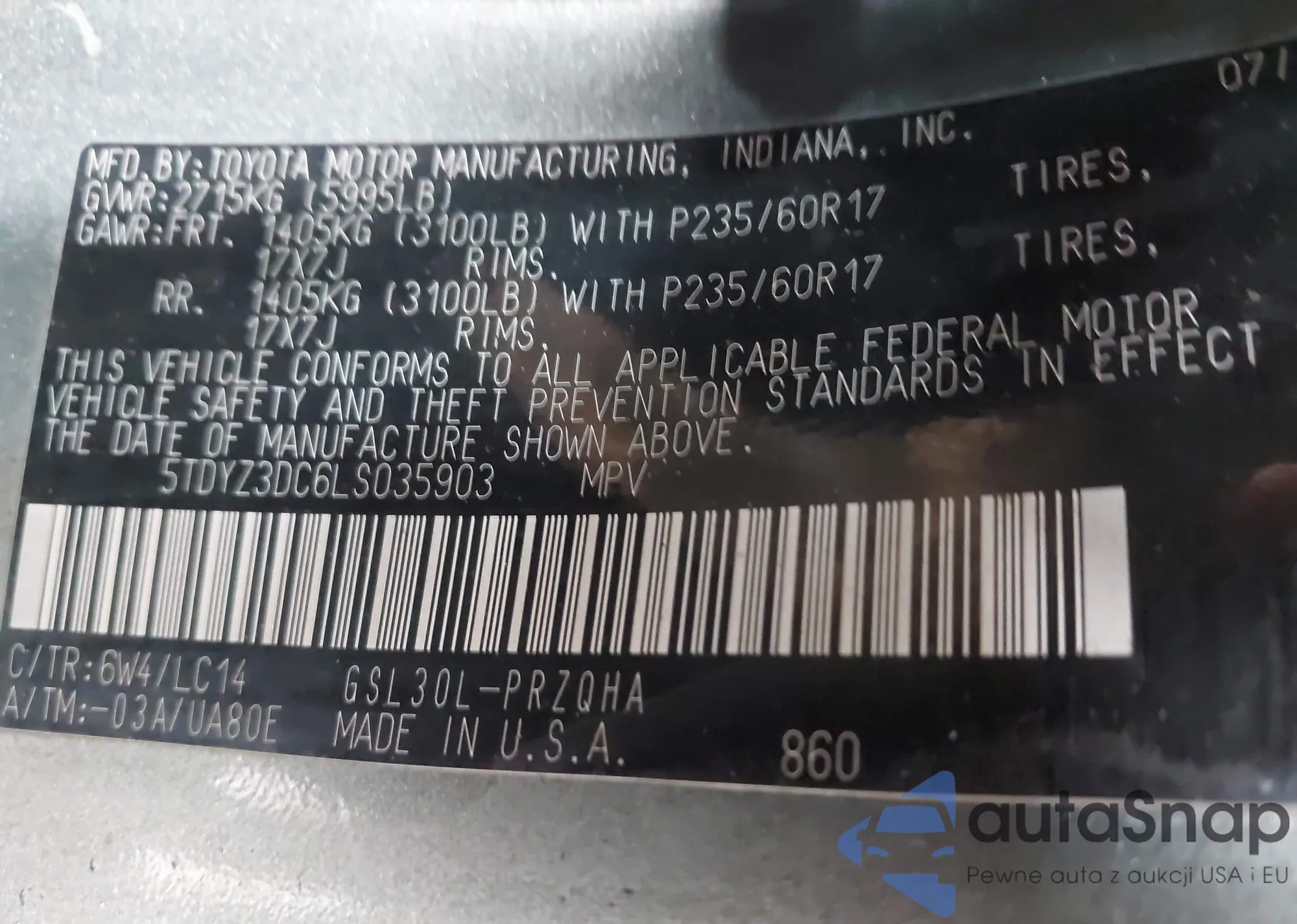 • VIN 5TDYZ3DC6LS035903
