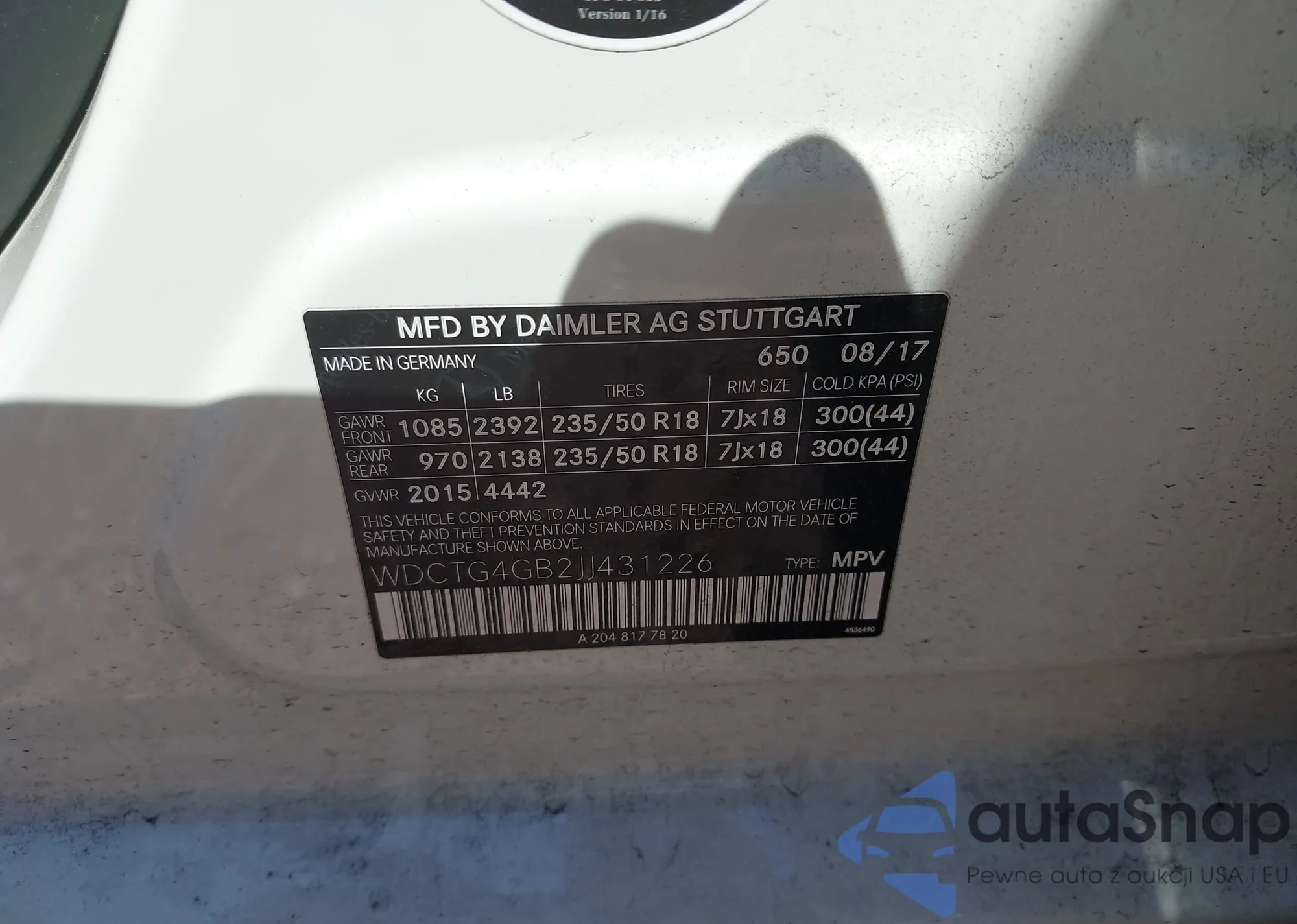 • VIN WDCTG4GB2JJ431226