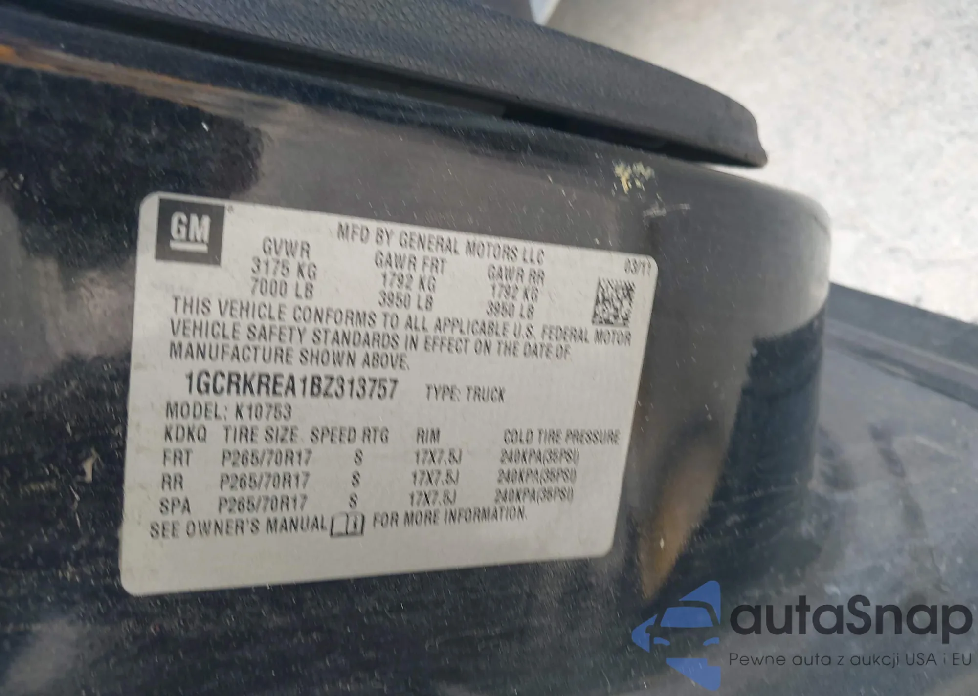 • VIN 1GCRKREA1BZ313757
