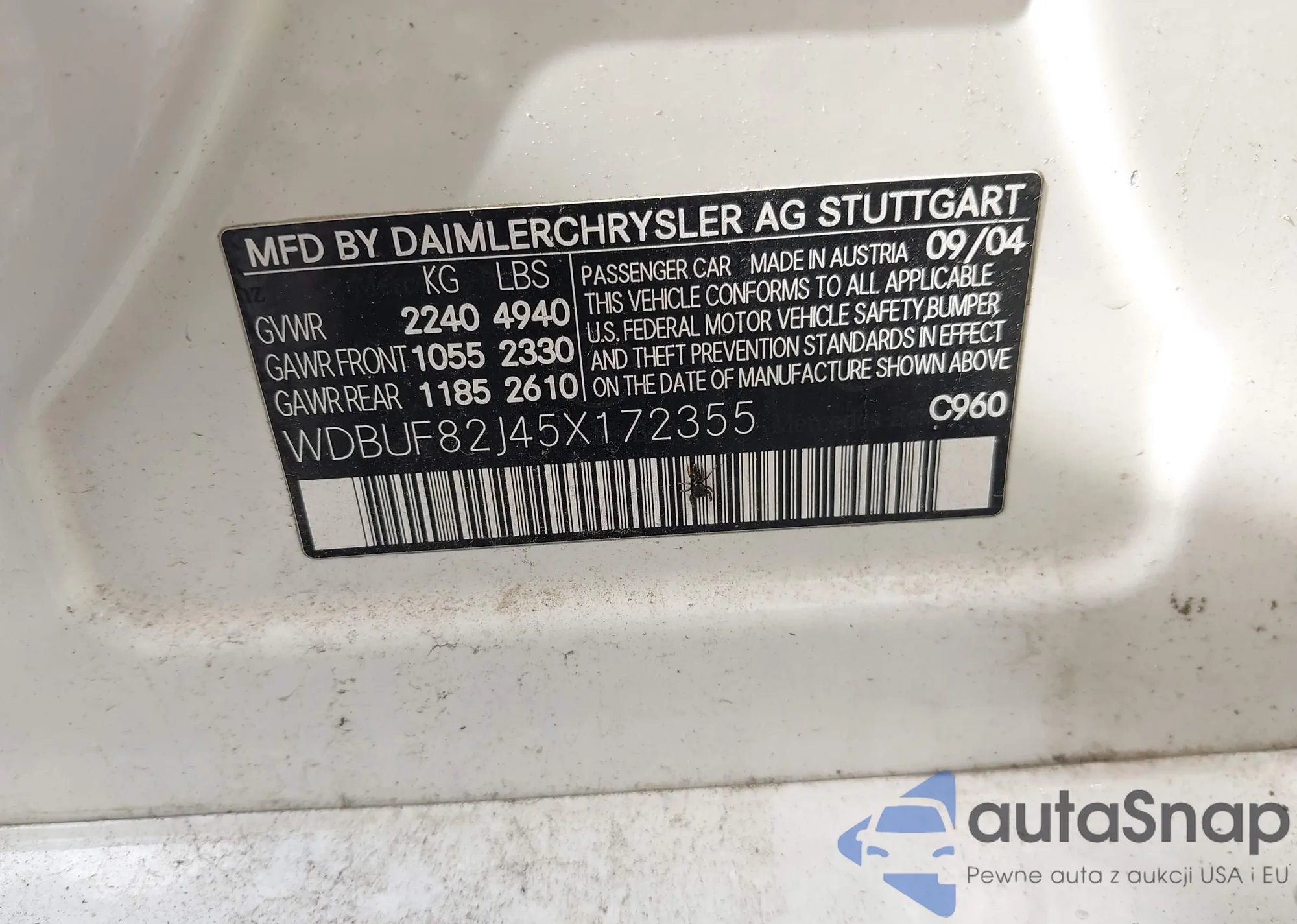 LOT: 43383244 VIN: WDBUF82J45X172355
