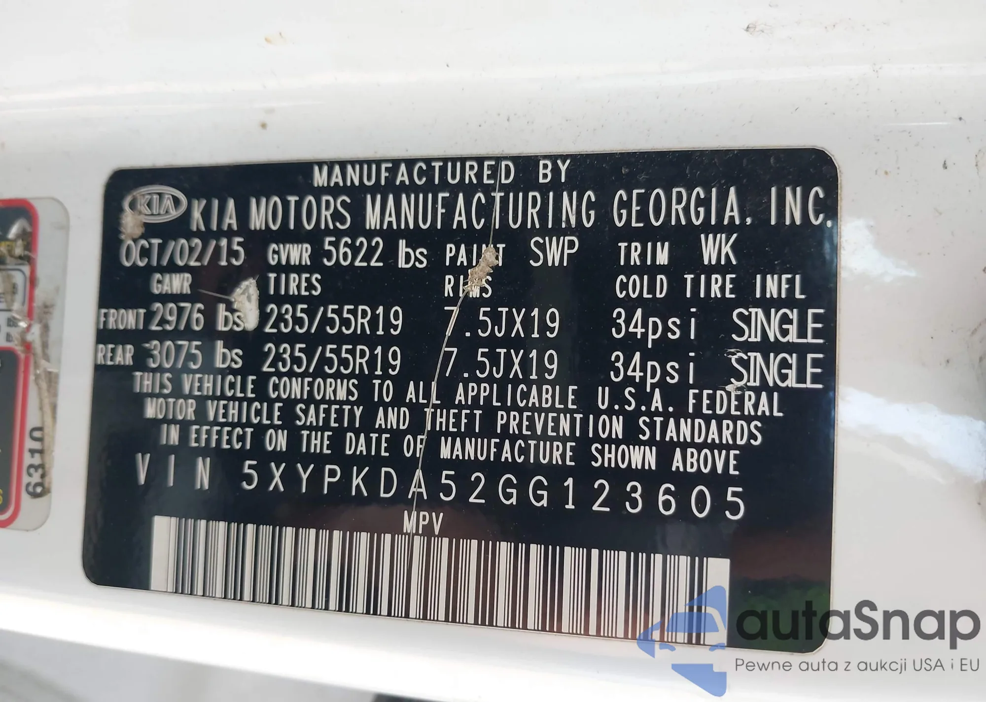 • VIN 5XYPKDA52GG123605