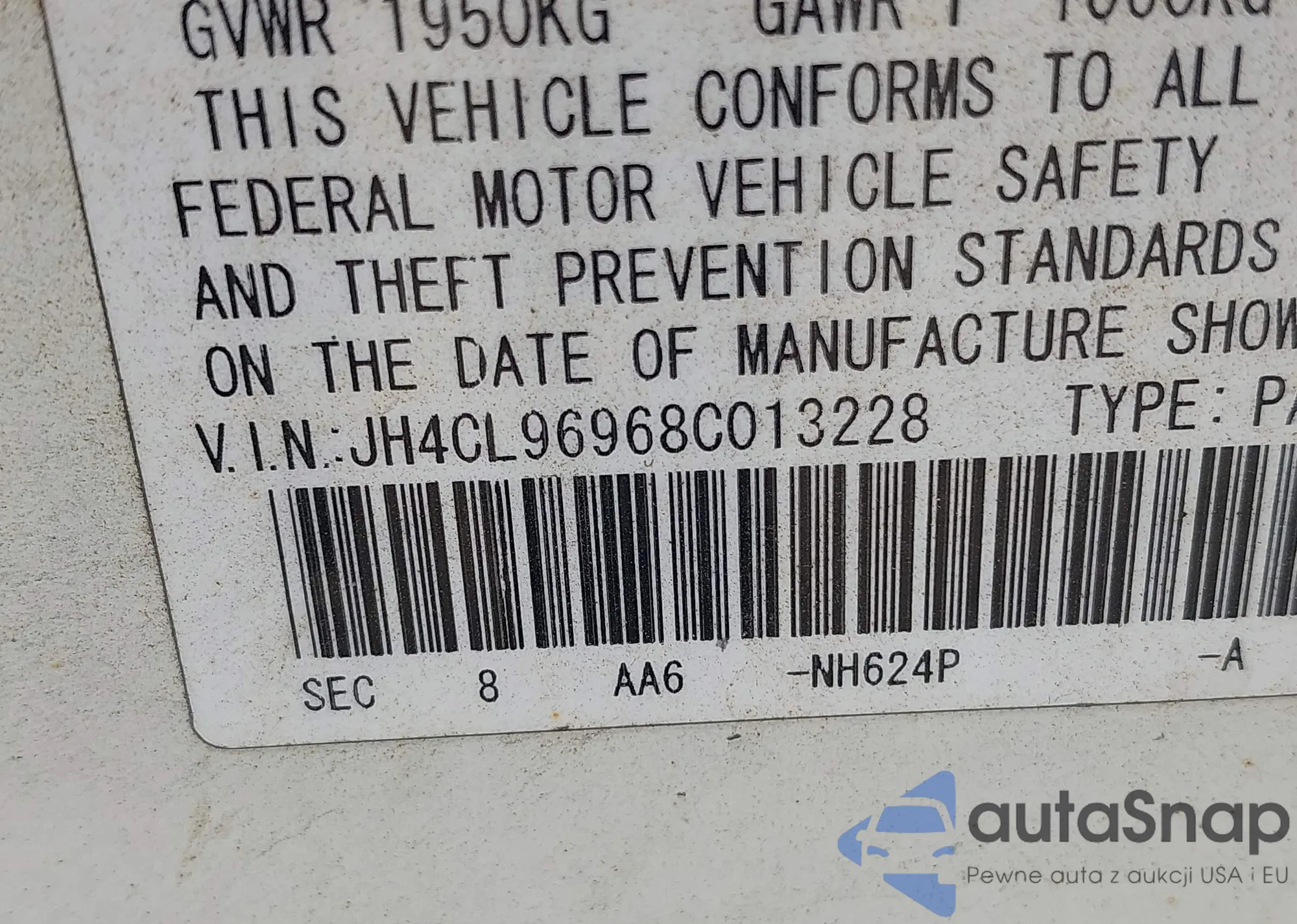 LOT: 42906928 VIN: JH4CL96968C013228