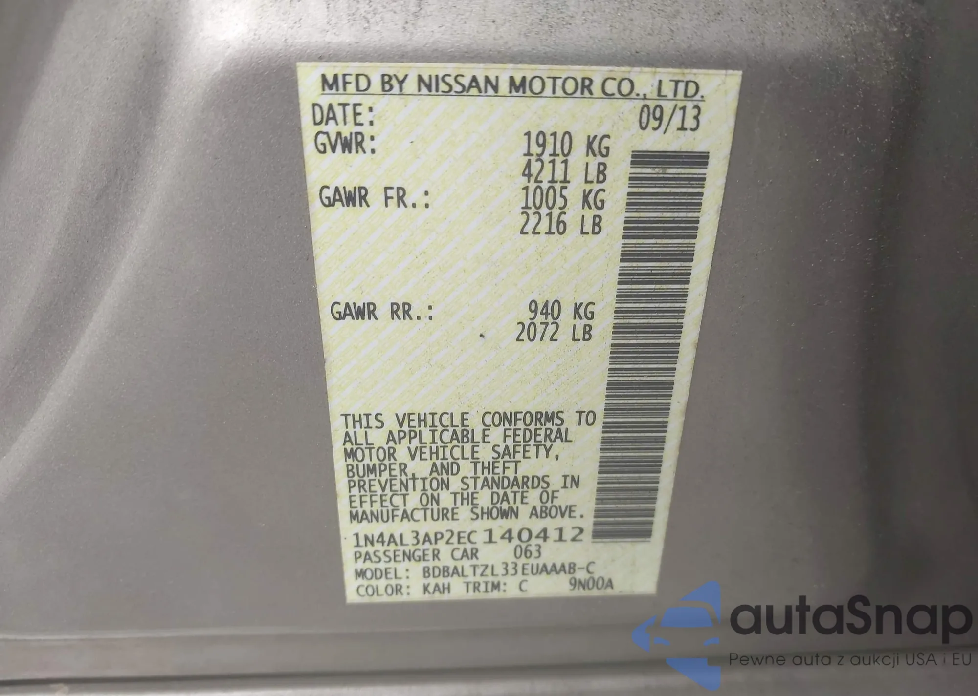 LOT: 42976030 VIN: 1N4AL3AP2EC140412