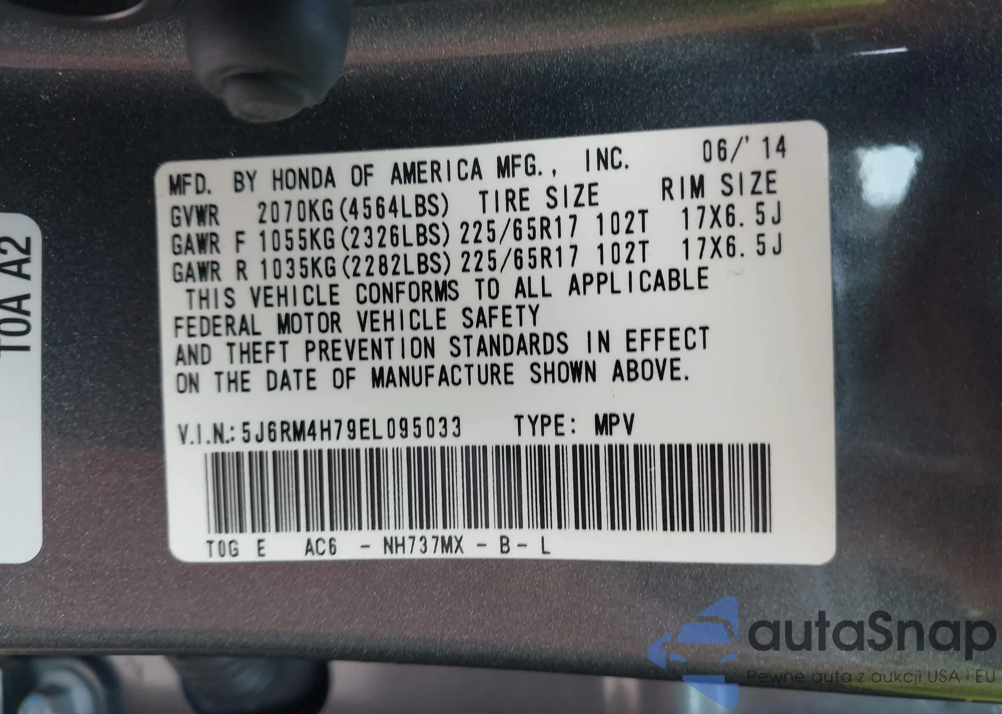 • VIN 5J6RM4H79EL095033