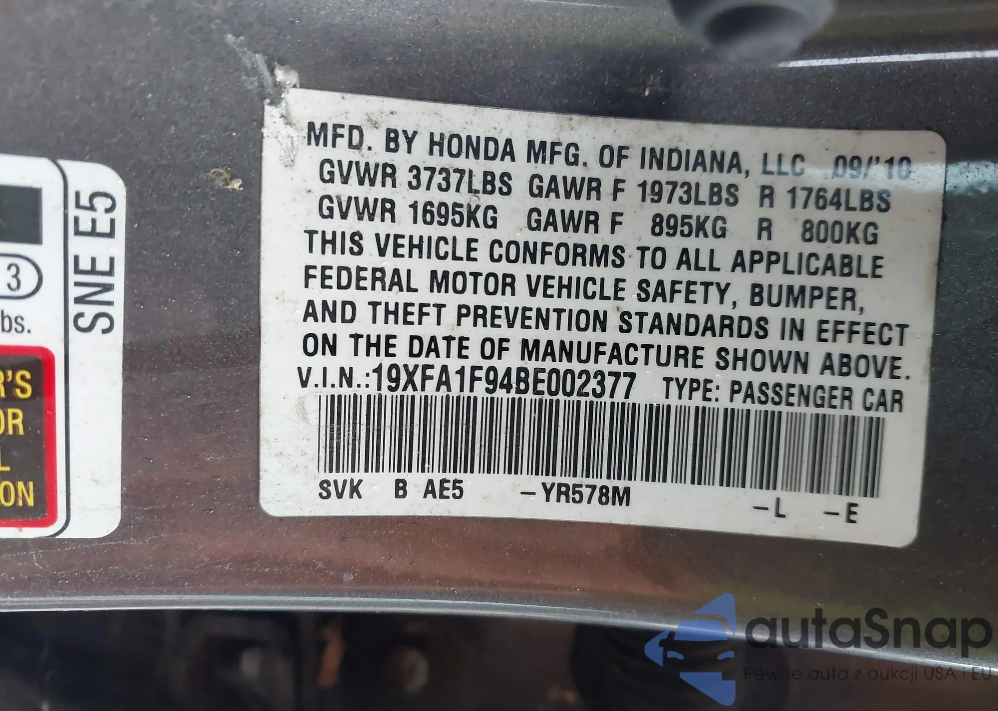 • VIN 5FNRL5H98FB092788