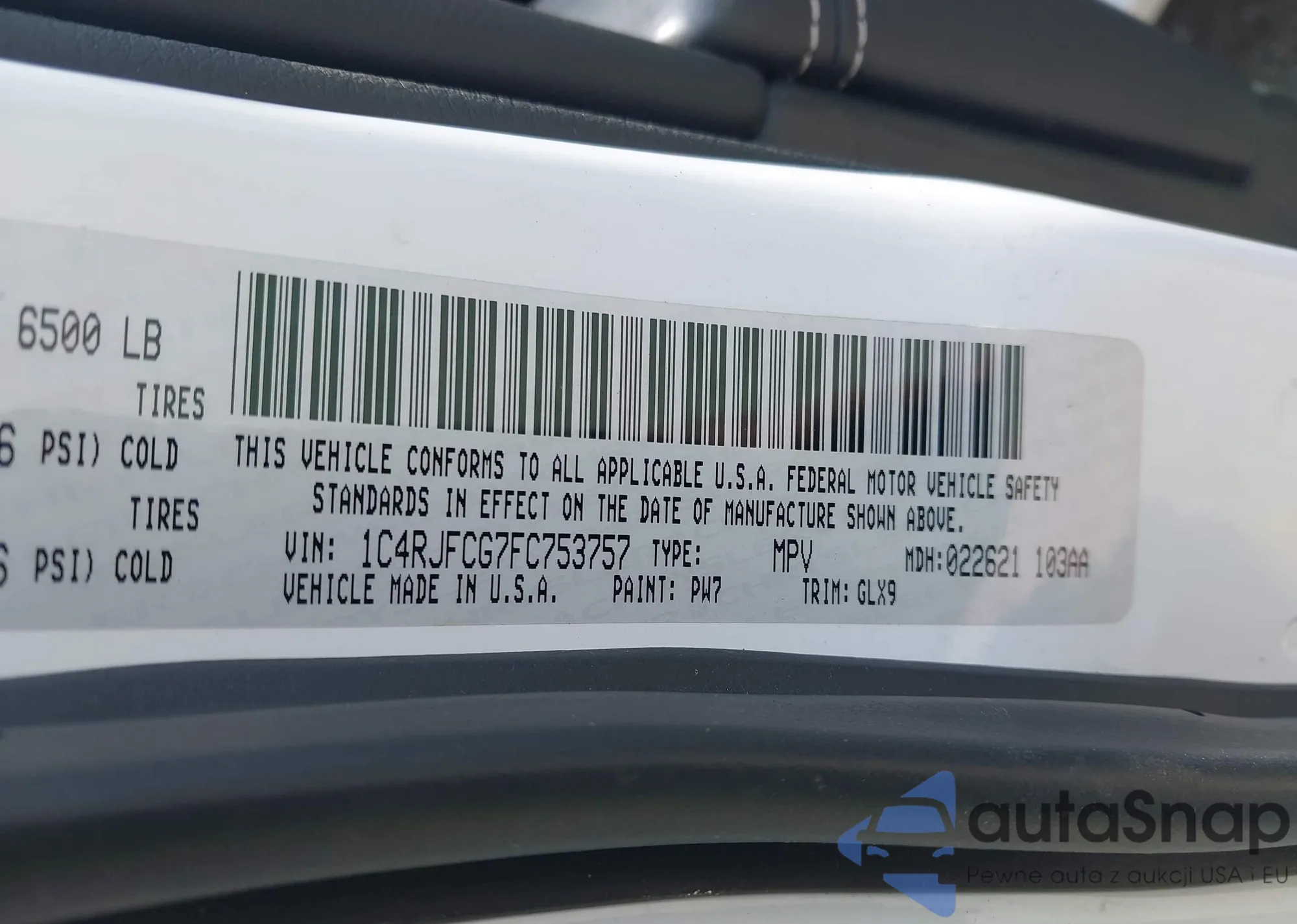 • VIN 1C4RJFCG7FC753757