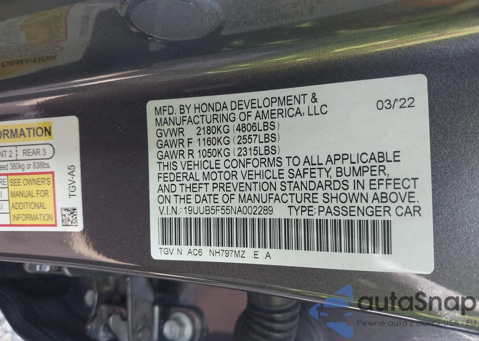 LOT: 42974415 VIN: 19XFL2H83RE032548