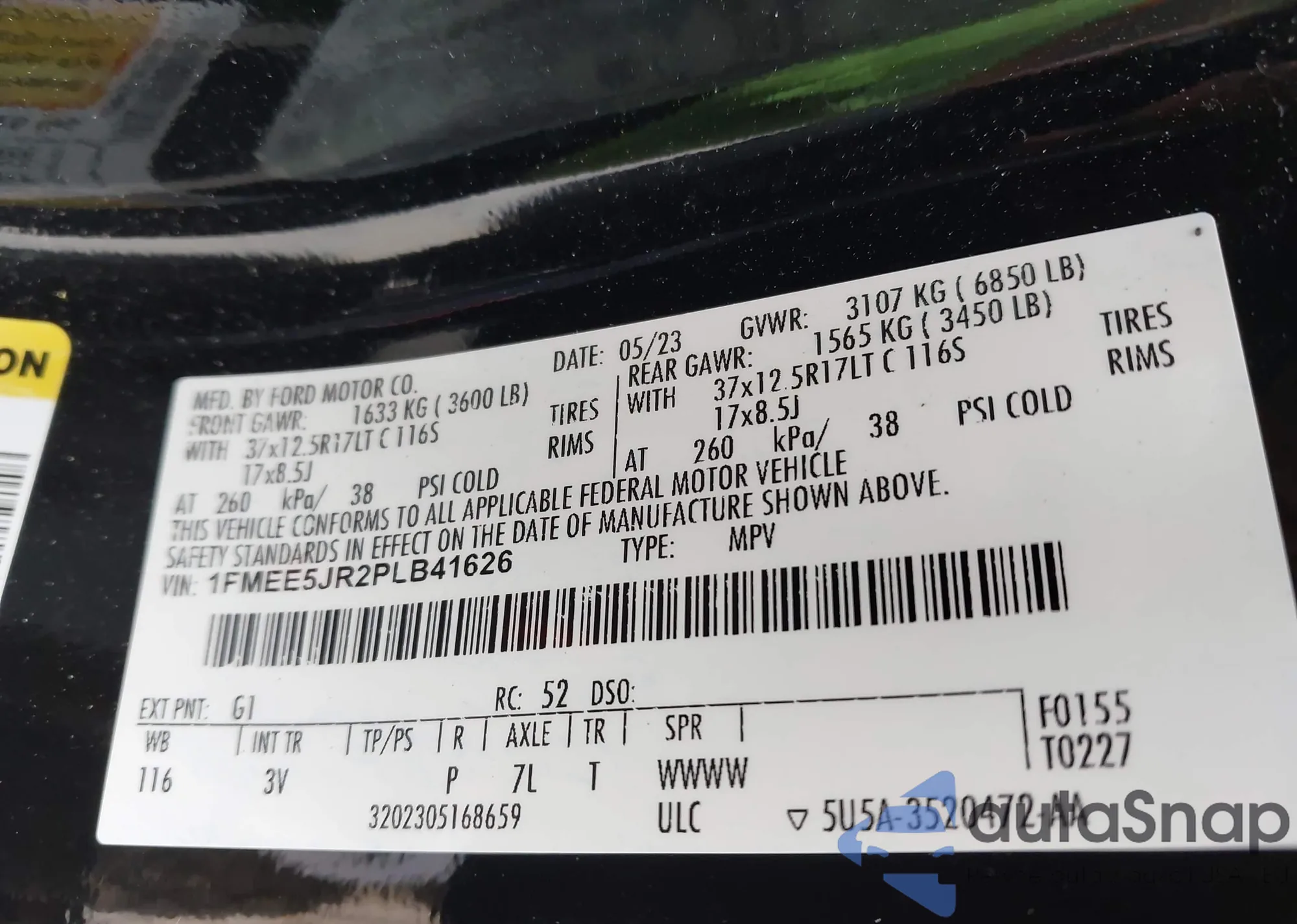 • VIN 1FMEE5JR2PLB41626