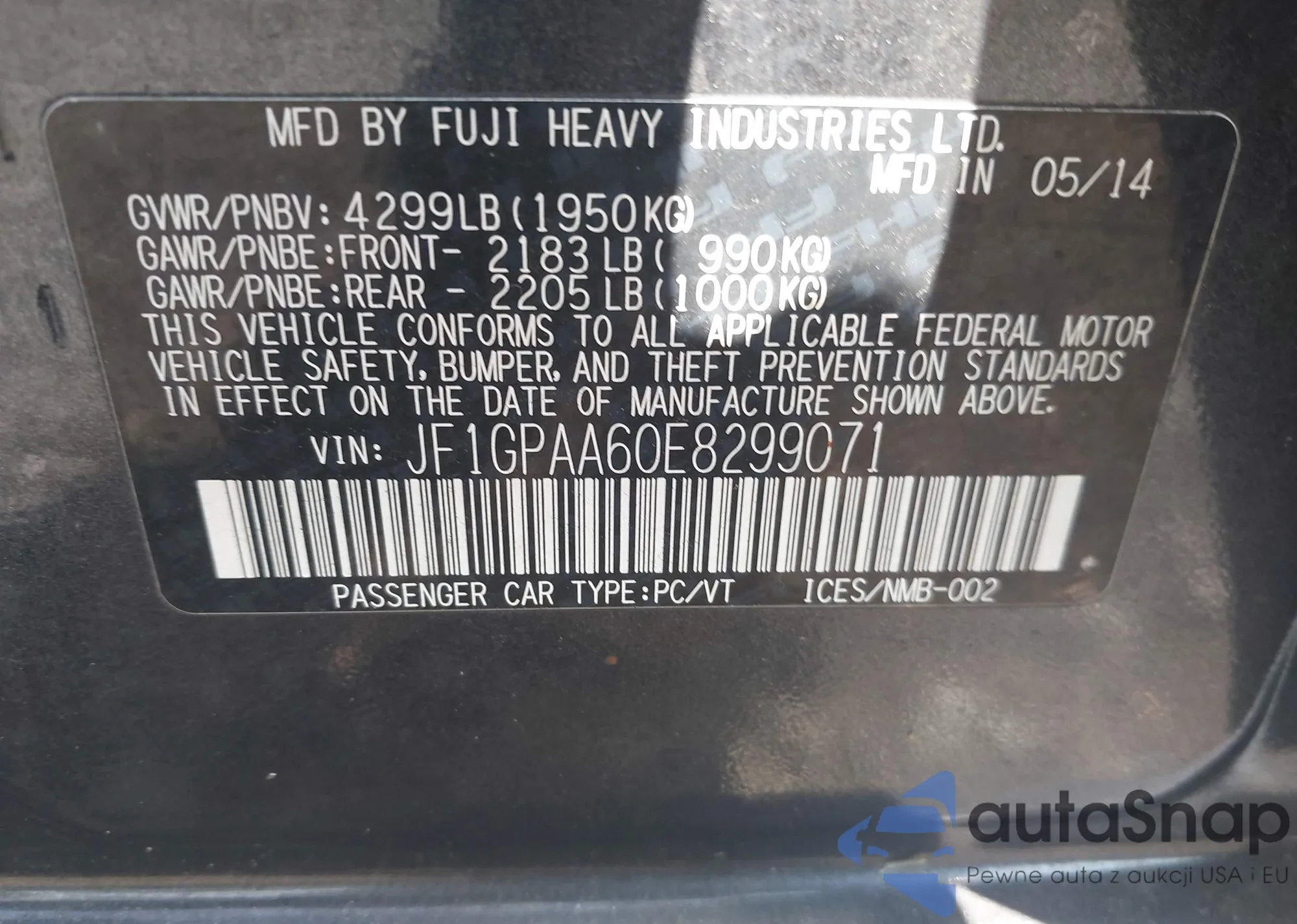 • VIN JF1GPAA60E8299071