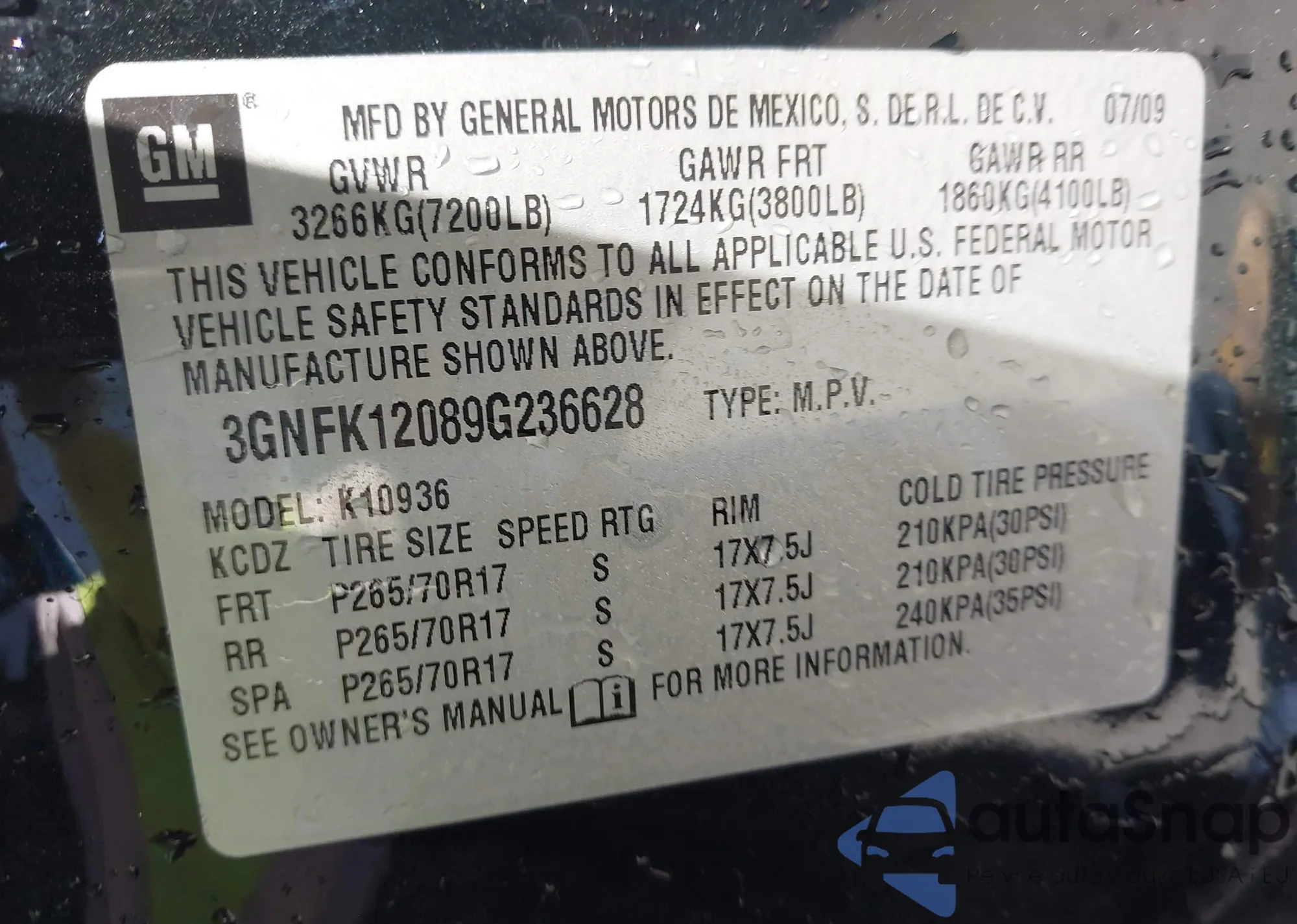 • VIN 3GNFK12089G236628