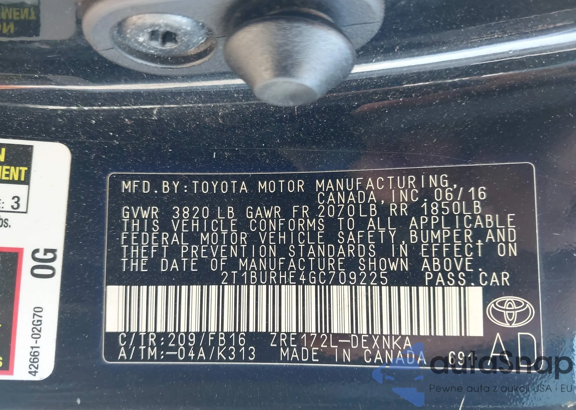 • VIN 2T1BURHE4GC709225