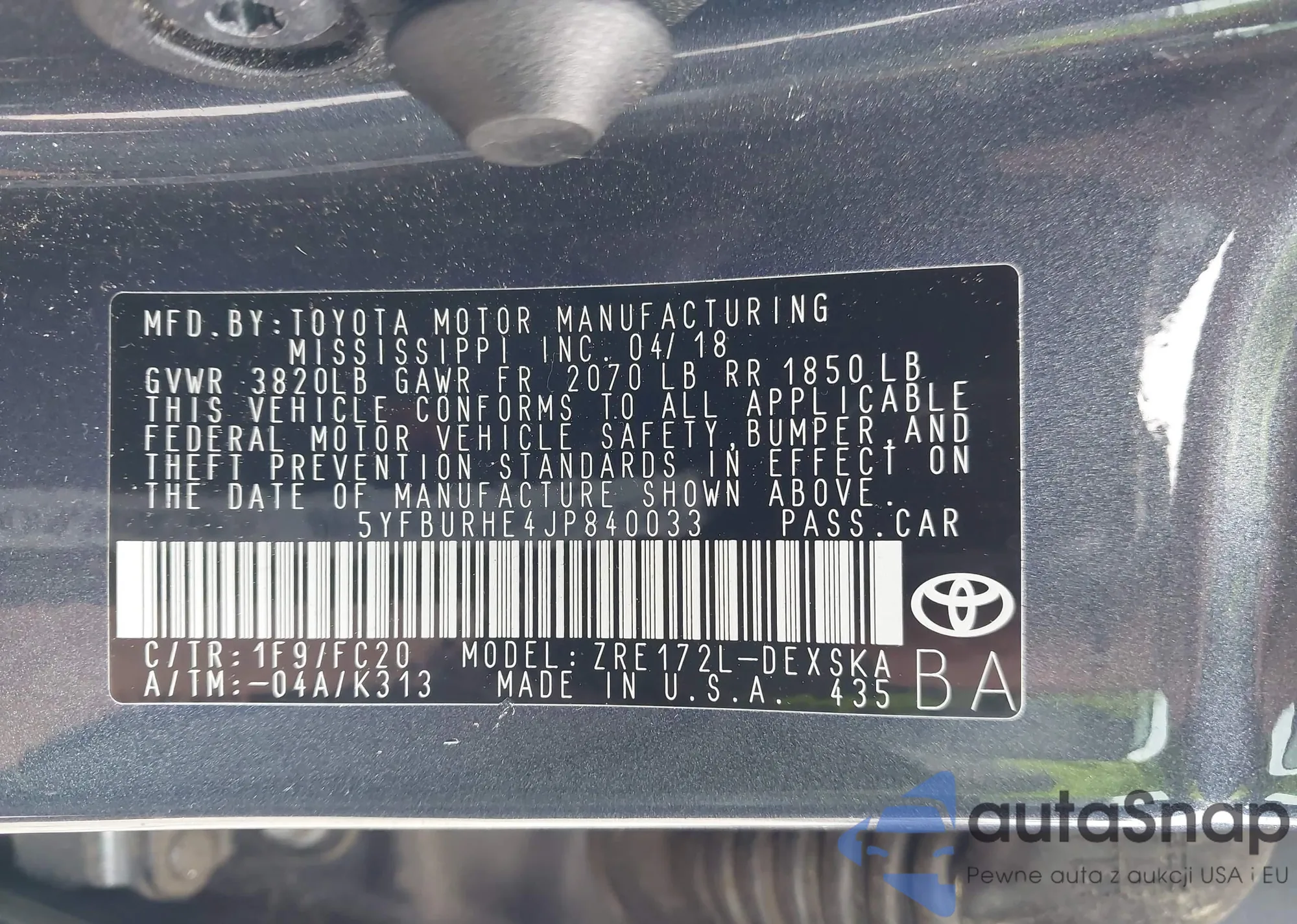 • VIN 5YFBURHE4JP840033
