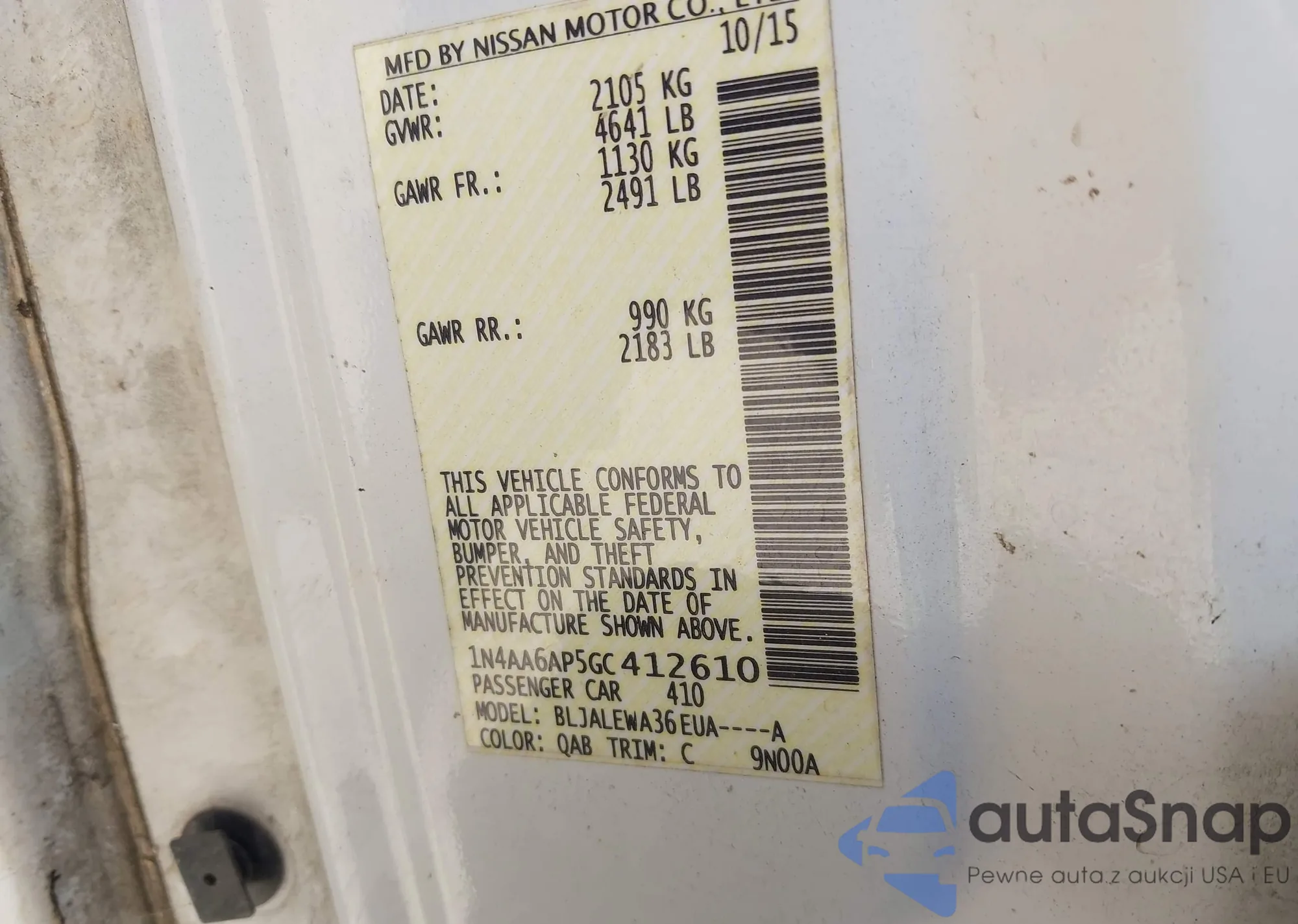 • VIN 1N4AA6AP5GC412610