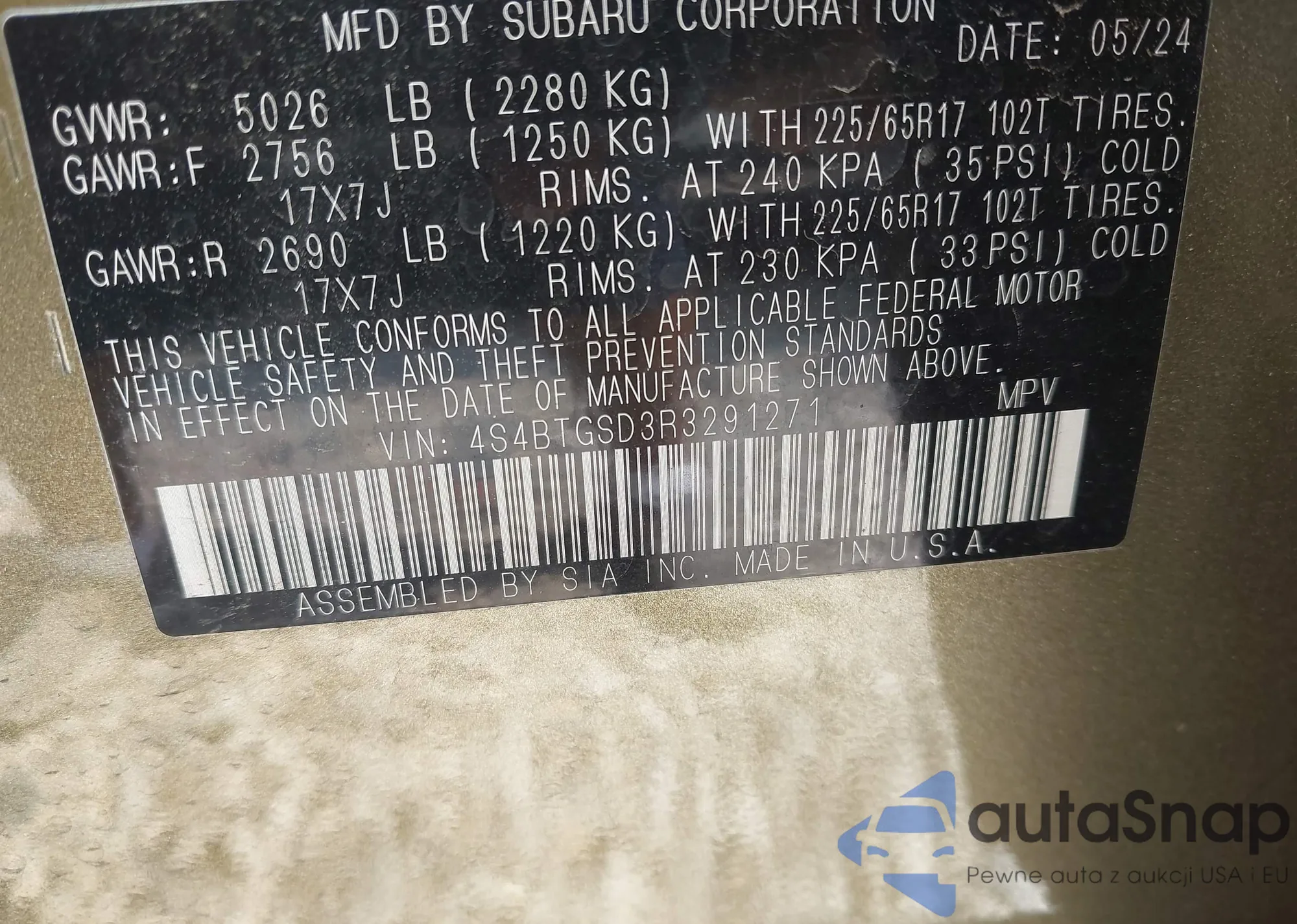 LOT: 43154679 VIN: 4S4BTGSD3R3291271