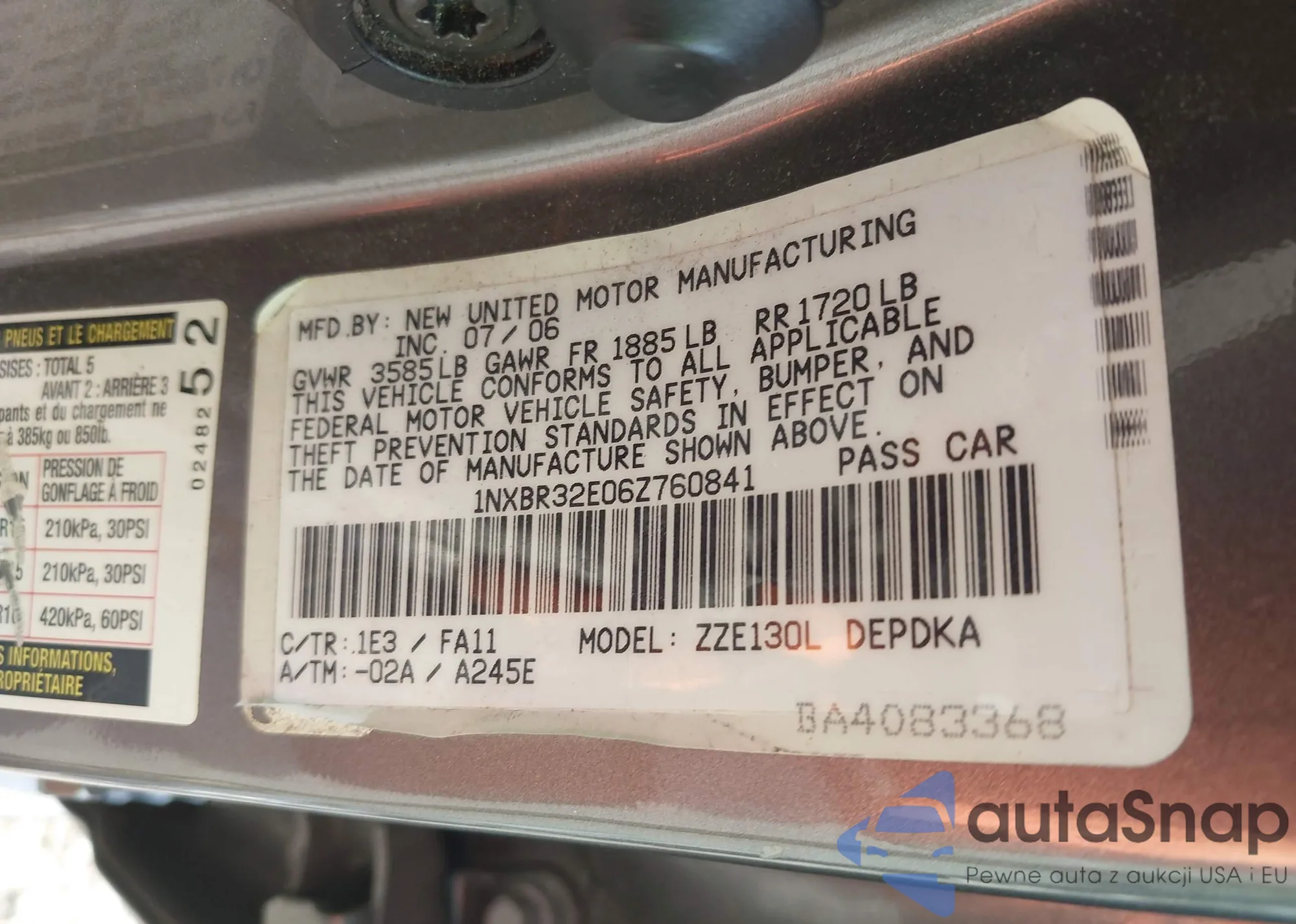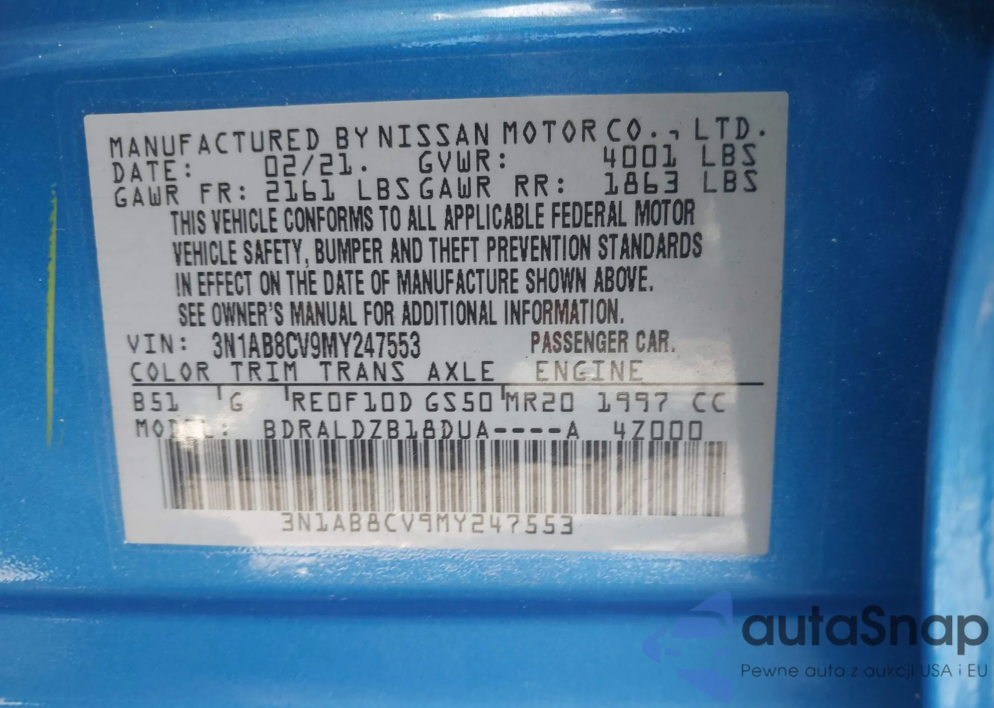 • VIN 3N1AB8CV9MY247553