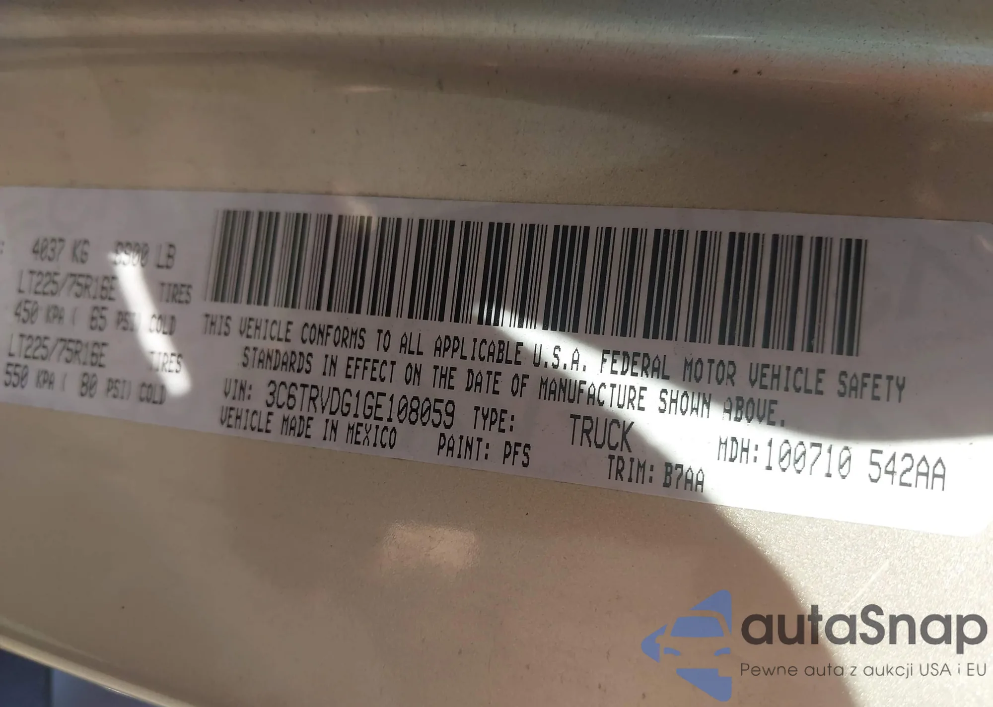 • VIN 3C6TRVDG1GE108059