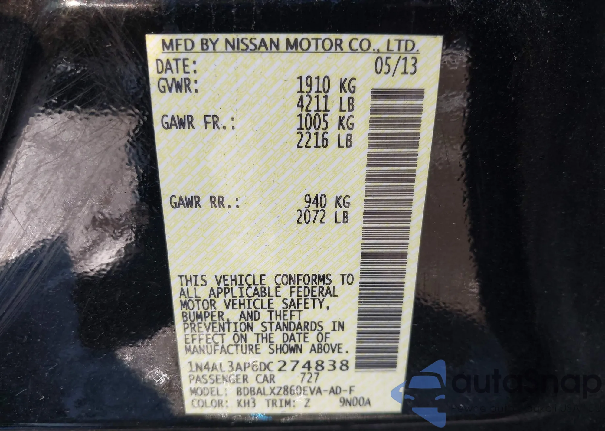 • VIN 1N4AA5AP7EC915322