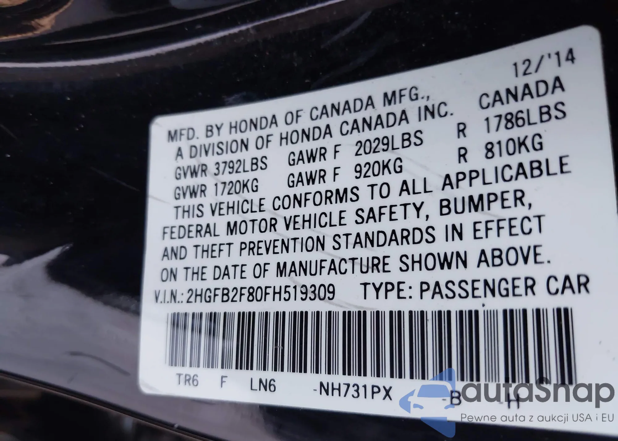 • VIN 2HGFB2F80FH519309