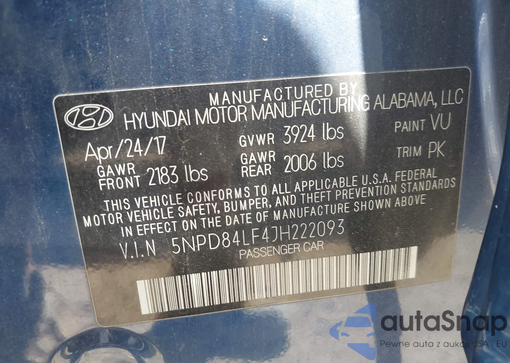 • VIN 5NPEB4AC1DH592825