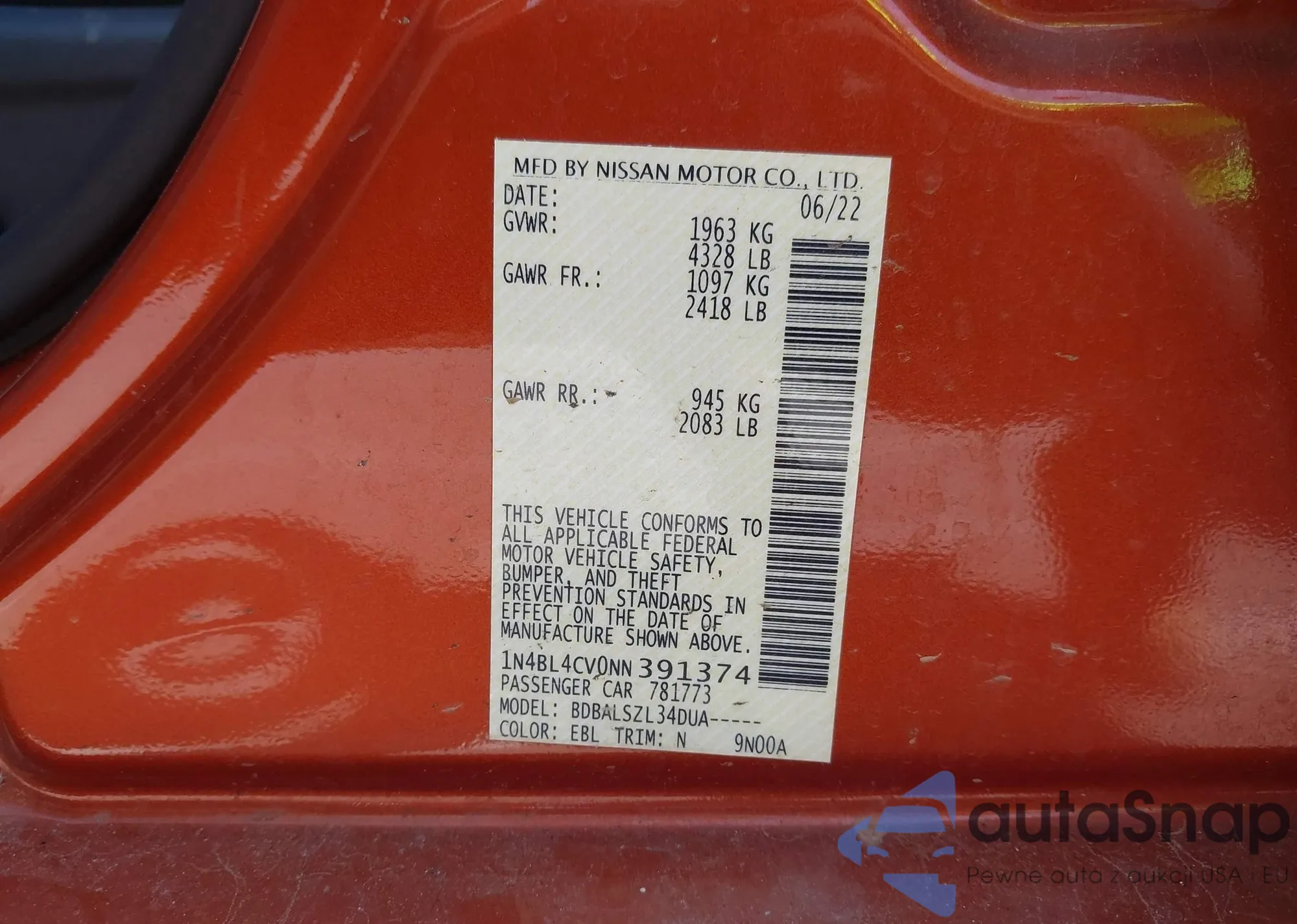 • VIN 3KPF54AD6NE484615