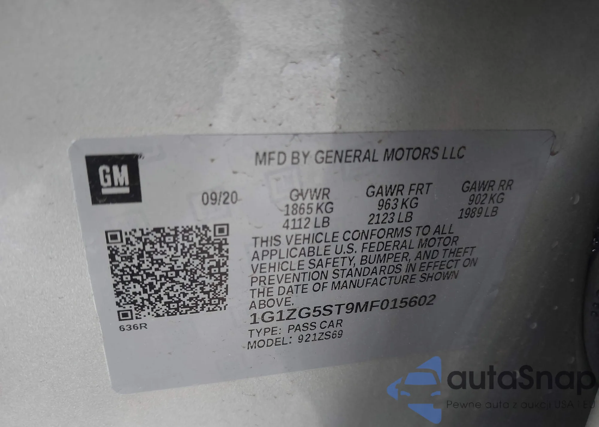 LOT: 43273161 VIN: 1G1ZG5ST9MF015602