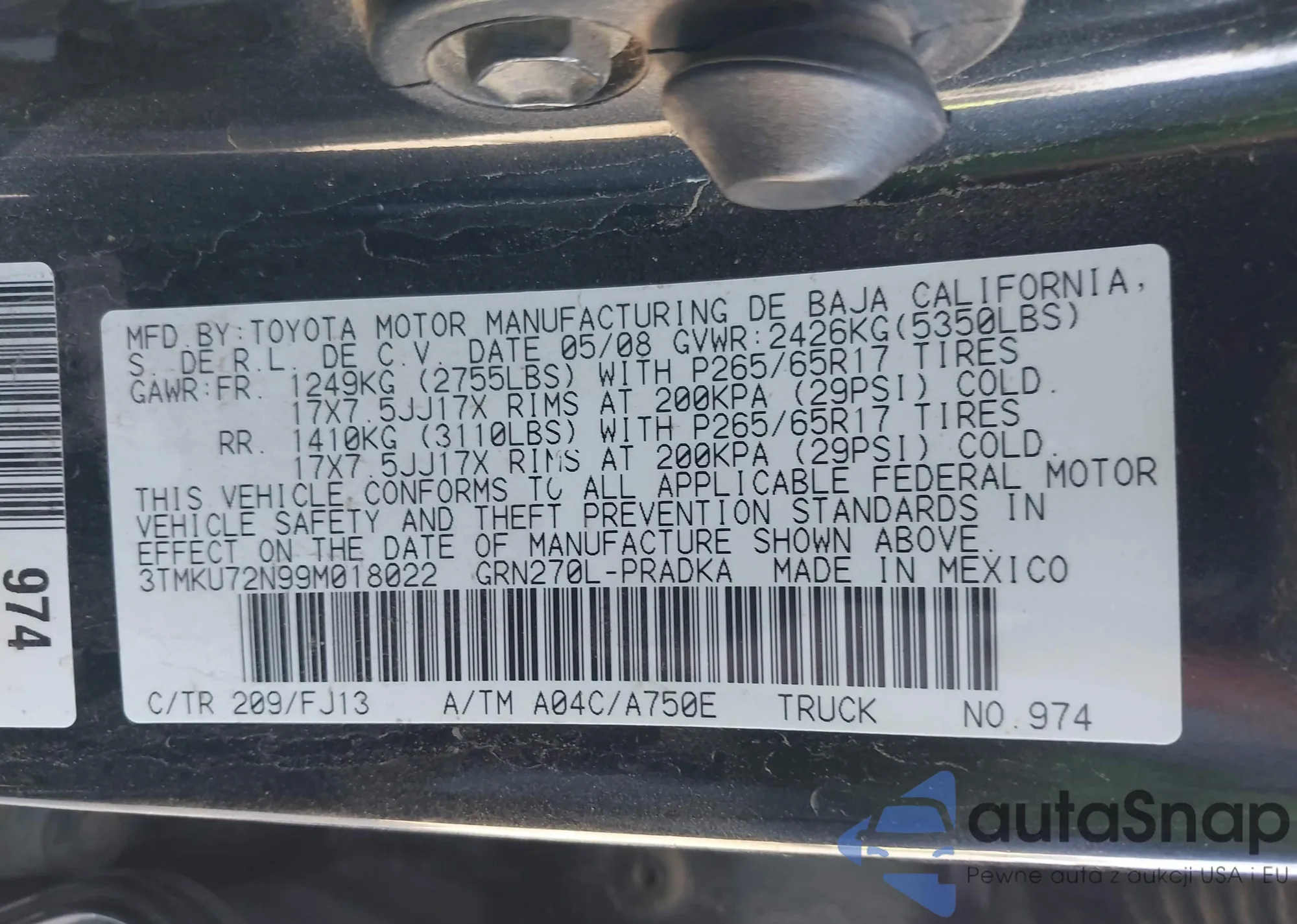 • VIN 3MW5U9J09M8C16077