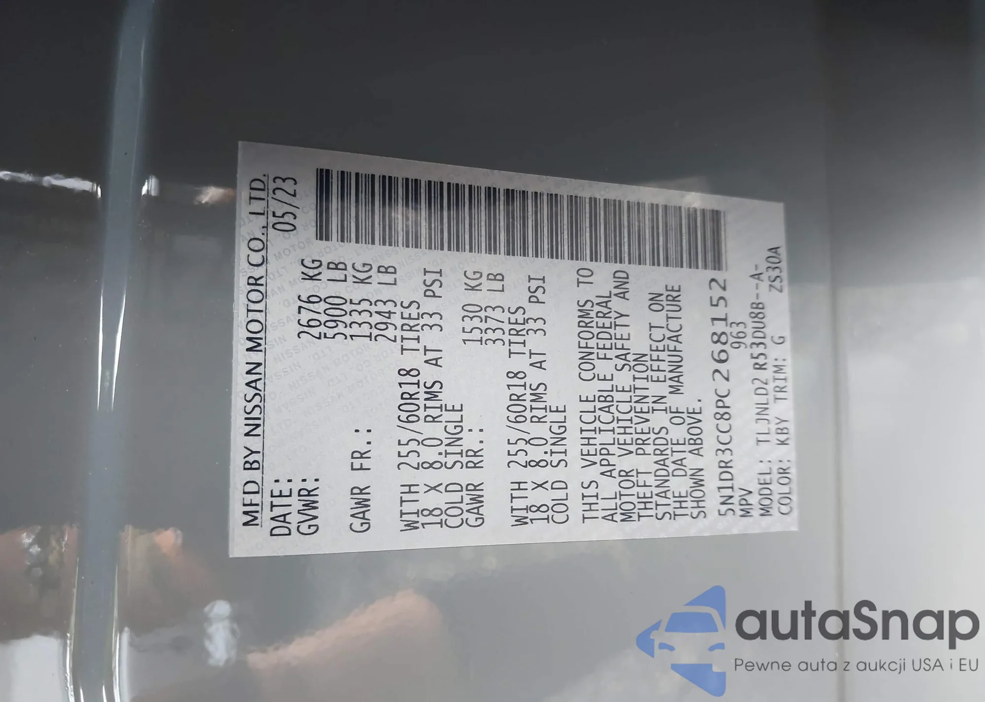 LOT: 43256314 VIN: 5N1DR3CC8PC268152