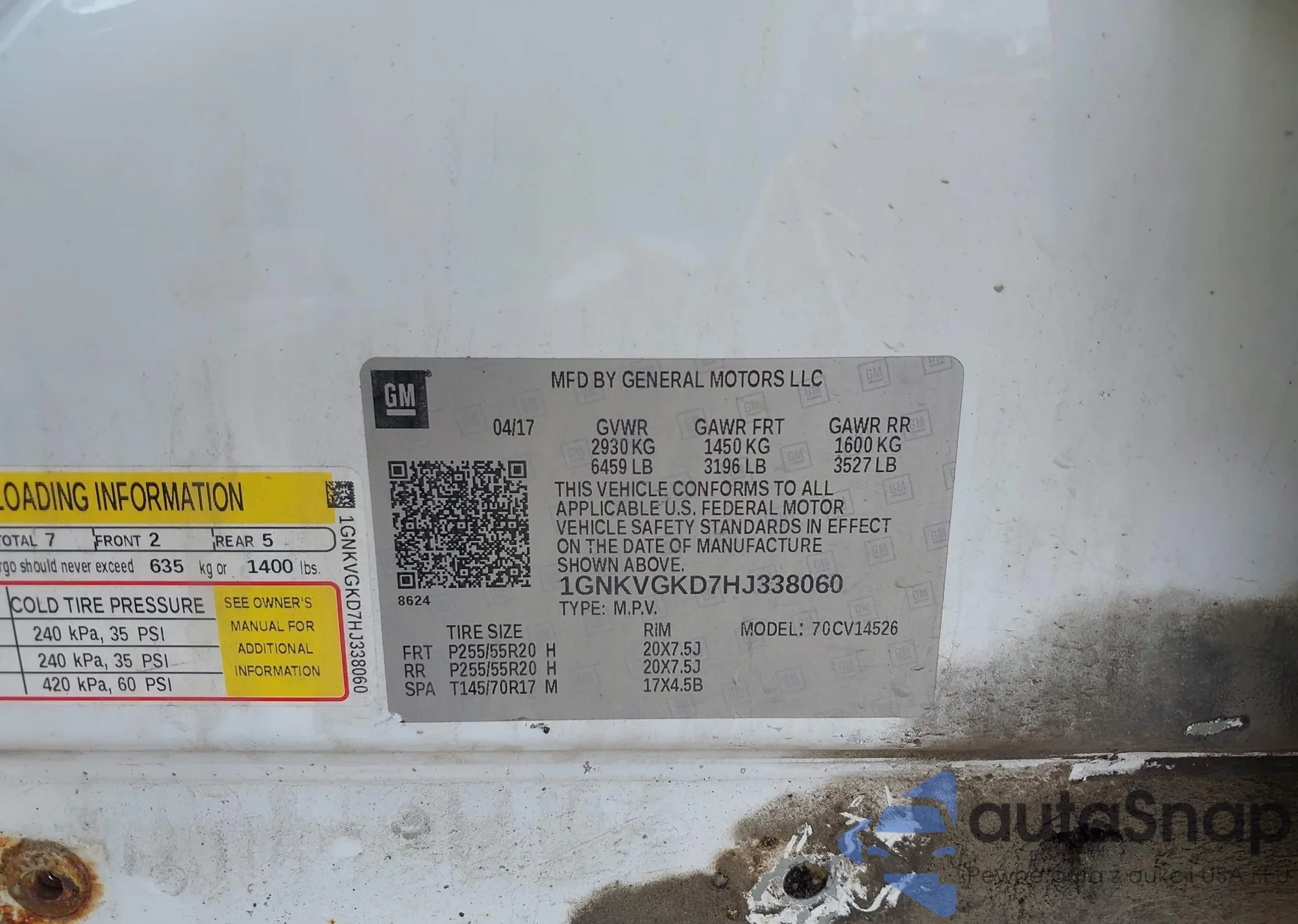 • VIN 1GNKVGKD7HJ338060