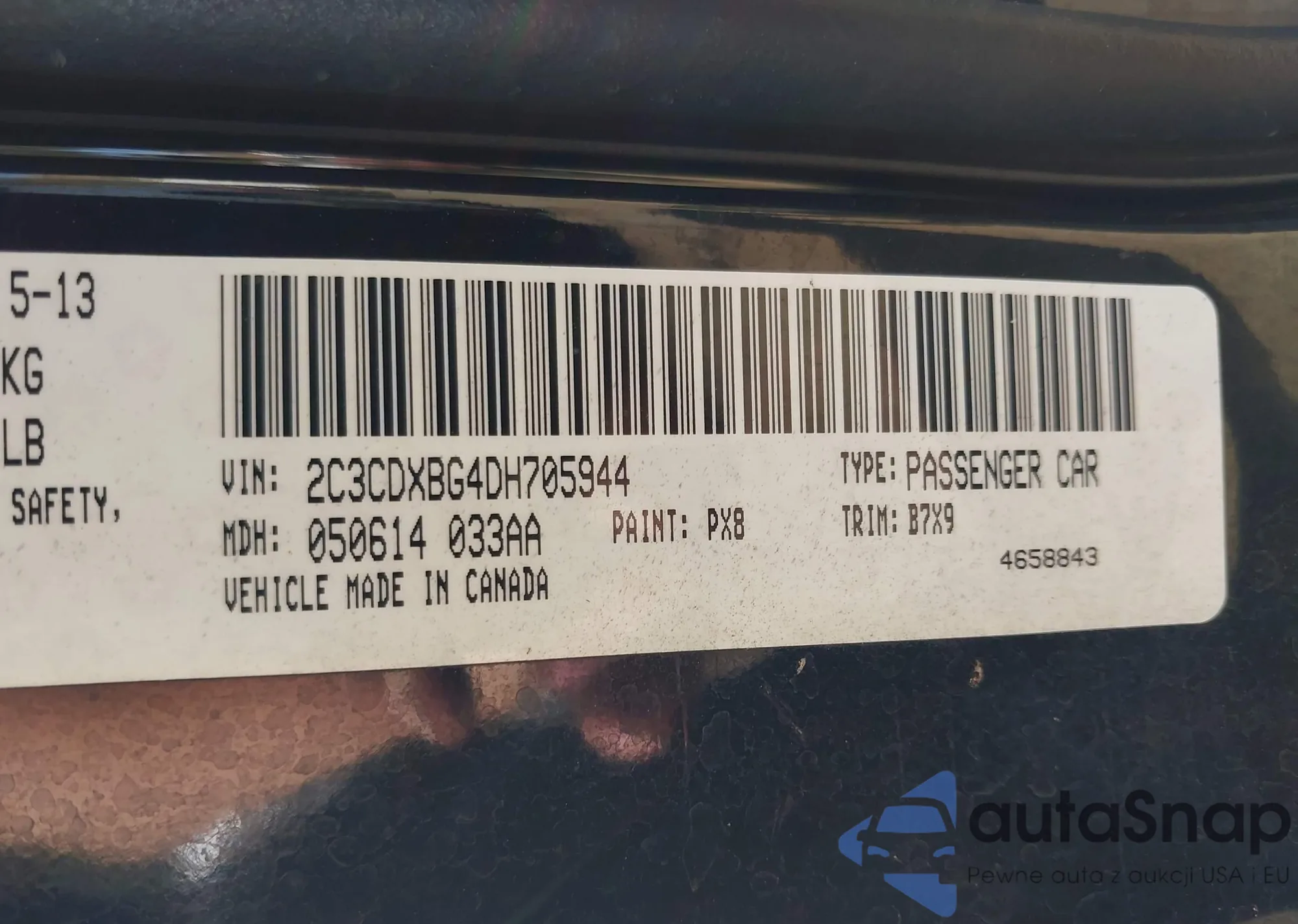 LOT: 43330520 VIN: 2C3CDXBG4DH705944