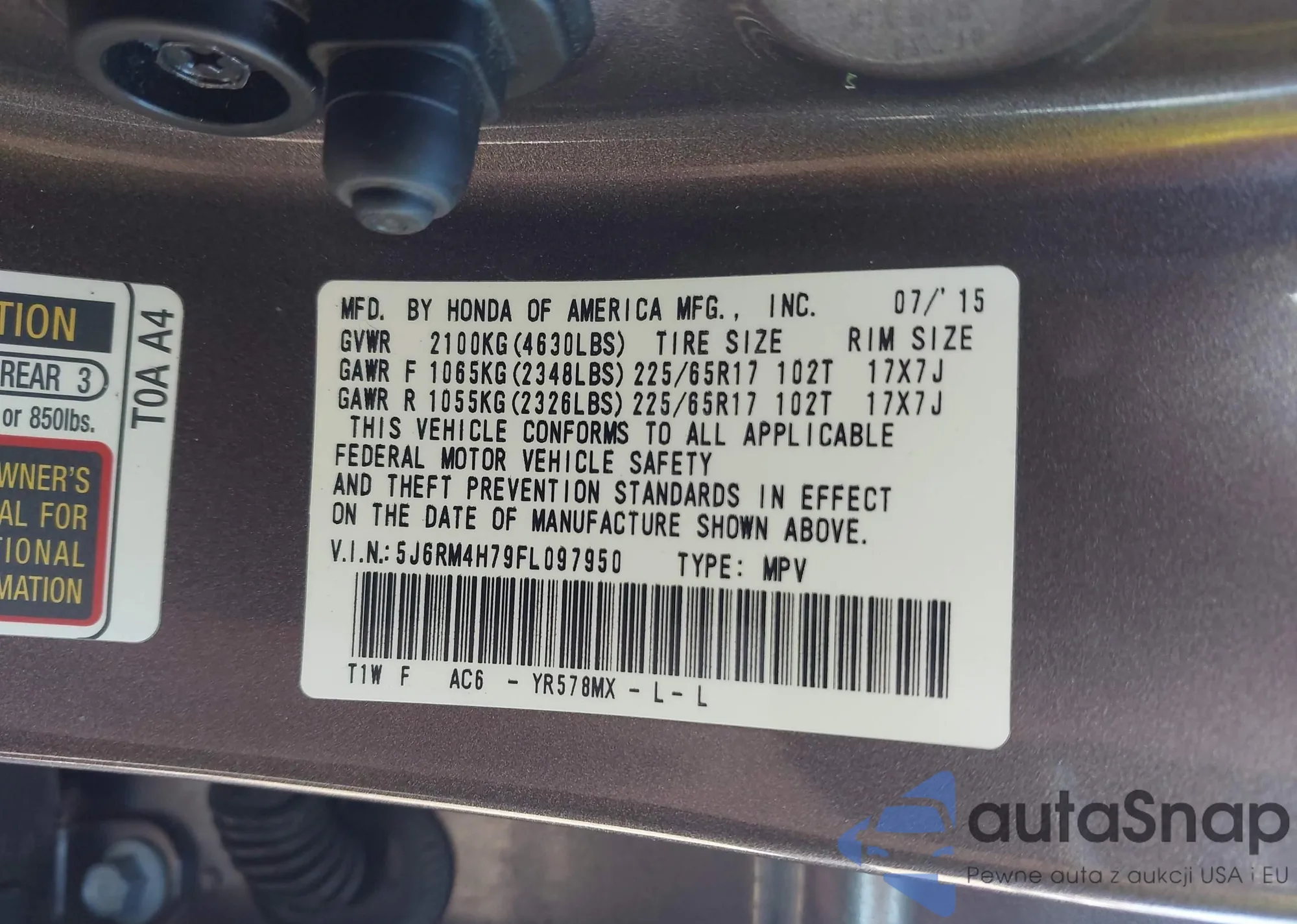 • VIN 5FNRL3H52AB013223