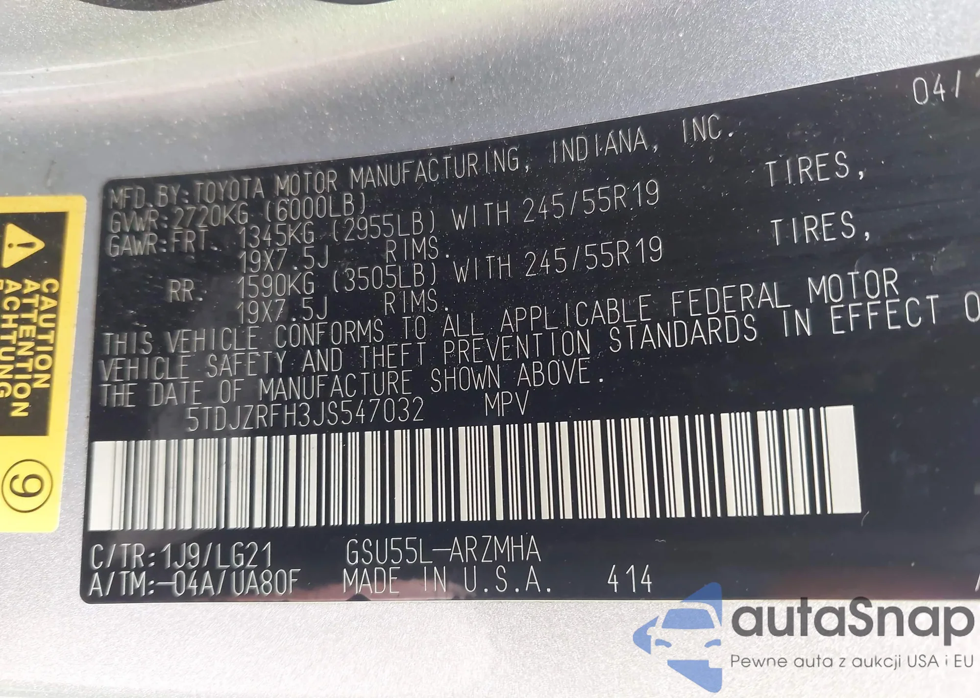 LOT: 43375798 VIN: 5TDJZRFH3JS547032