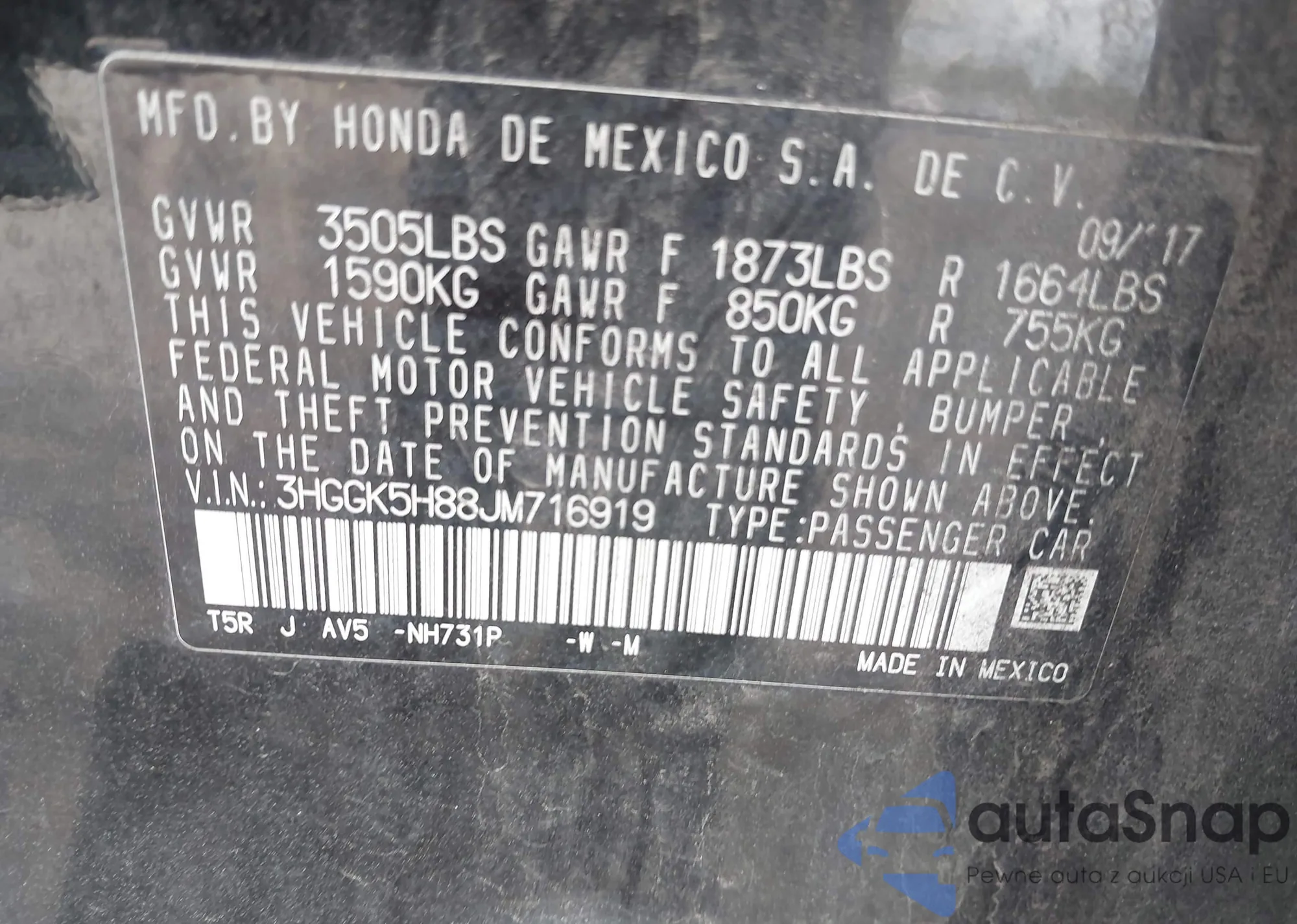 • VIN 3HGGK5H88JM716919