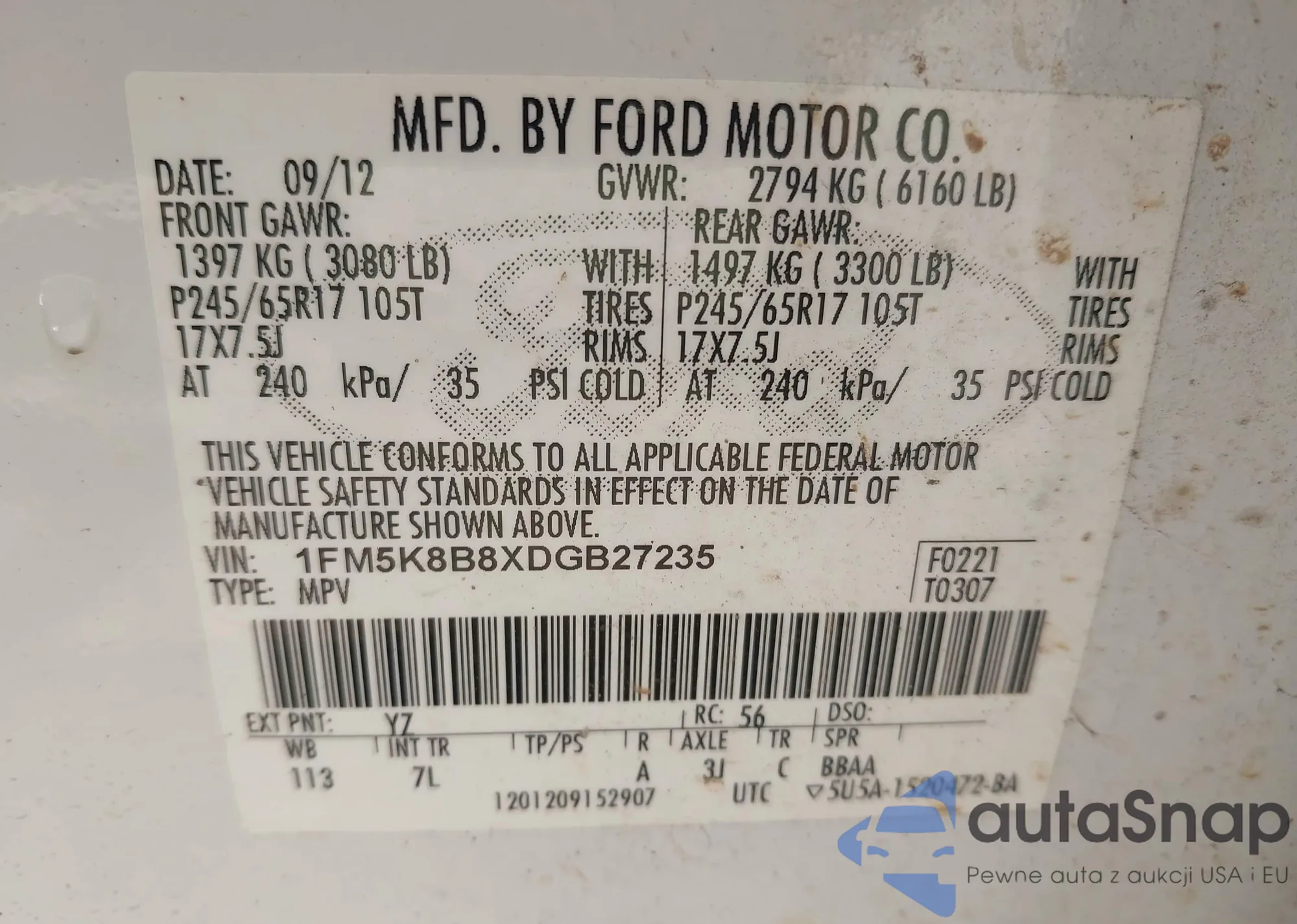 LOT: 43389076 VIN: 1G1PF5SC8C7301251