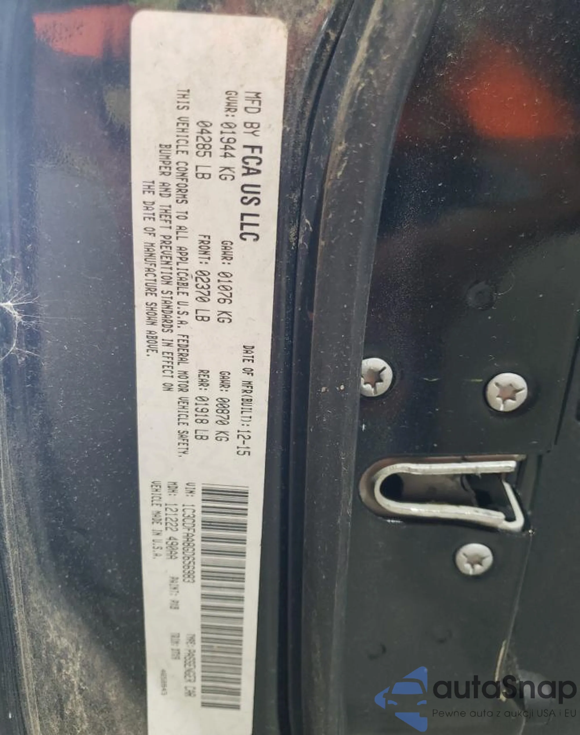 • VIN 1C3CDFAA8GD656983