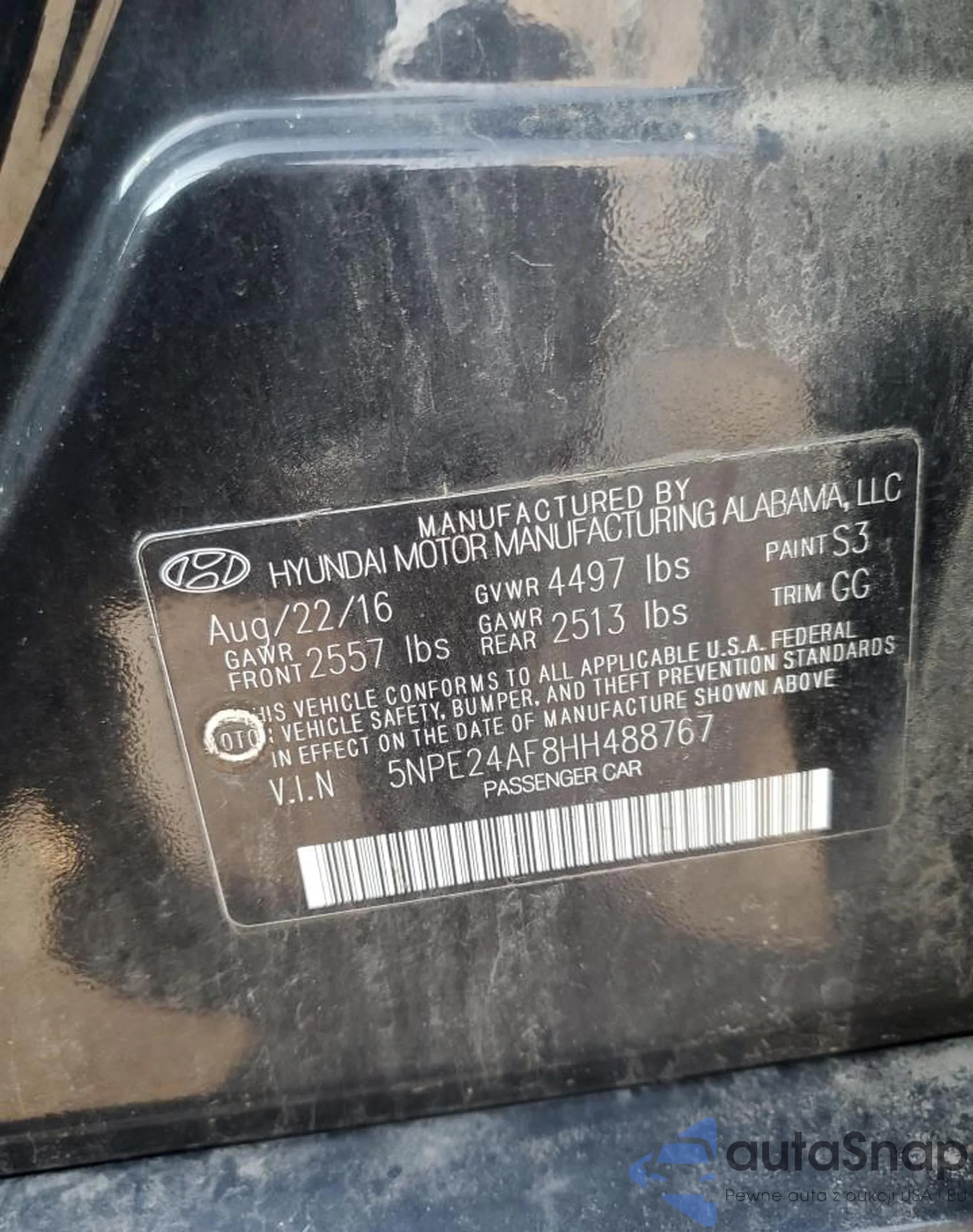 • VIN 5NPE24AF0KH753849