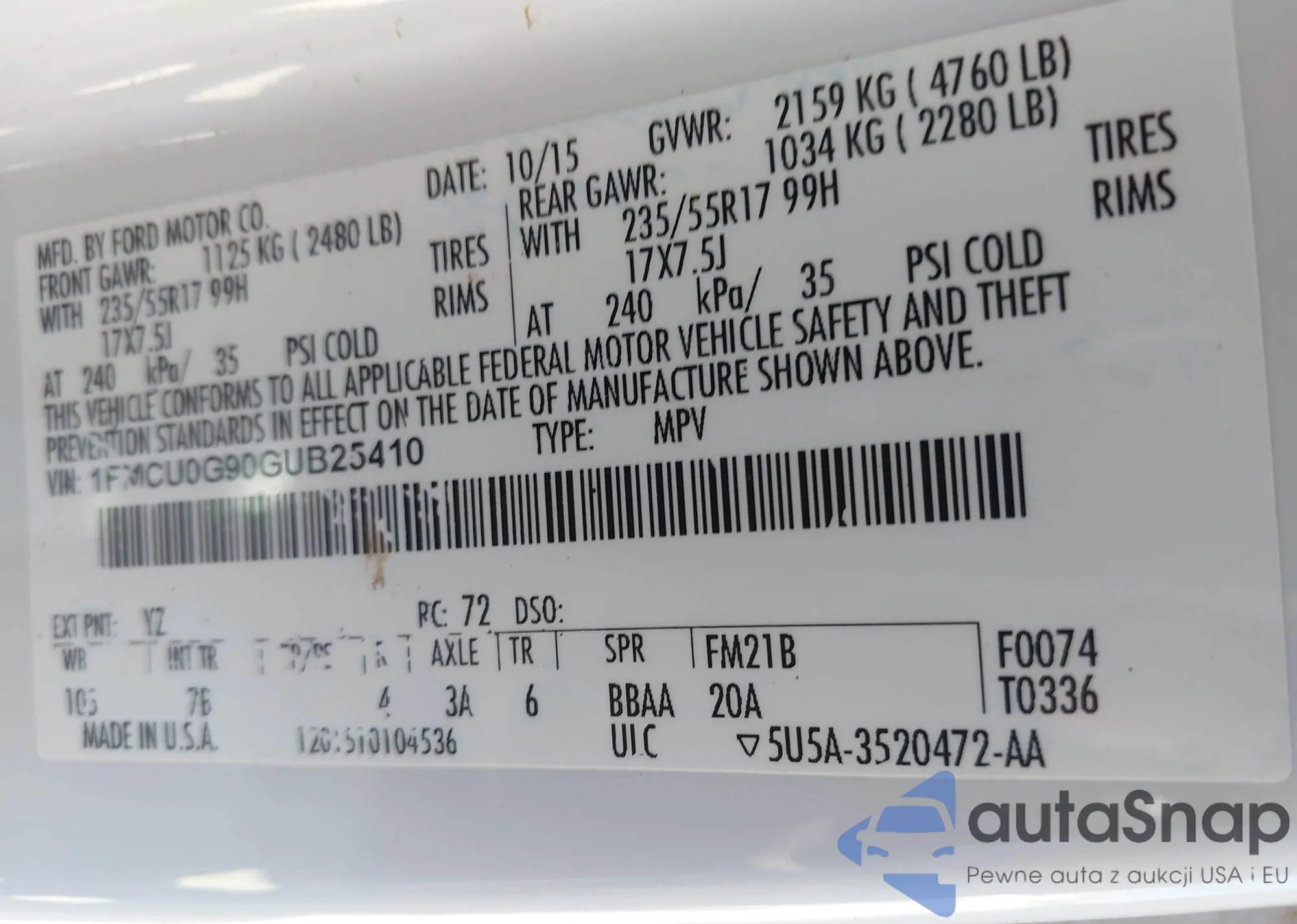 • VIN 1FMCU0G90GUB25410